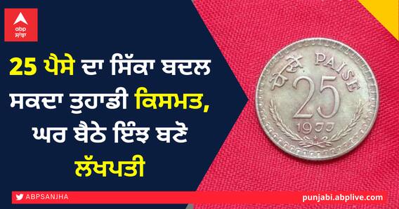 ਨਵੀਂ ਦਿੱਲੀ: ਜੇਕਰ ਤੁਹਾਡੇ ਕੋਲ 25 ਪੈਸੇ (25 paisa Coin) ਦਾ ਉਹ ਖਾਸ ਸਿੱਕਾ ਹੈ, ਜਿਸ ਦਾ ਰੰਗ ਚਾਂਦੀ ਵਰਗਾ ਹੈ, ਤਾਂ ਤੁਹਾਨੂੰ ਘਰ ਬੈਠੇ ਲੱਖਪਤੀ ਬਣਨ ਤੋਂ ਕੋਈ ਨਹੀਂ ਰੋਕ ਸਕਦਾ।ਮੀਡੀਆ ਰਿਪੋਰਟਾਂ ਮੁਤਾਬਕ ਇਸ ਸਿੱਕੇ ਦੇ ਬਦਲੇ ਤੁਸੀਂ ਭਾਰਤੀ ਮੁਦਰਾ 'ਚ 1.5 ਲੱਖ ਰੁਪਏ ਤਕ ਕਮਾ ਸਕਦੇ ਹੋ। ਇਸ ਦਾ ਮਤਲਬ ਇਹ ਹੋਇਆ ਕਿ ਇੱਕ ਸਿੱਕਾ ਤੁਹਾਡੀ ਕਿਸਮਤ ਬਦਲ ਸਕਦਾ ਹੈ।
