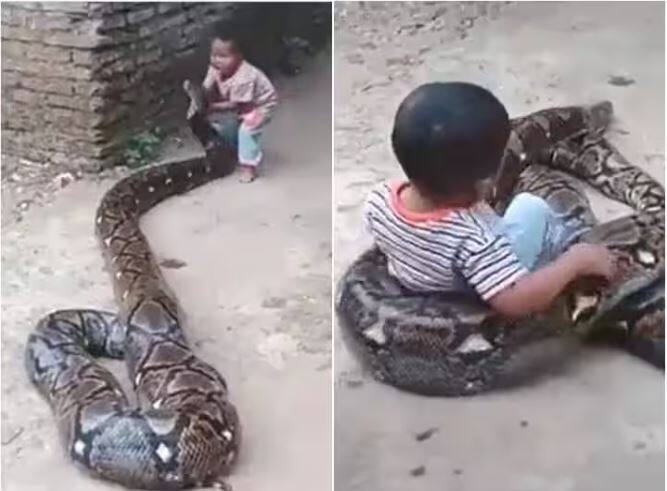 Shocking Viral Video: ਅਕਸਰ ਸੋਸ਼ਲ ਮੀਡੀਆ 'ਤੇ ਕੁਝ ਦਿਲ ਦਹਿਲਾ ਦੇਣ ਵਾਲੇ ਵੀਡੀਓ ਦੇਖਣ ਨੂੰ ਮਿਲਦੀਆਂ ਹਨ। ਜਿਨ੍ਹਾਂ ਨੂੰ ਦੇਖ ਕੇ ਯੂਜ਼ਰਸ ਨੂੰ ਪਸੀਨਾ ਆਉਣ ਲੱਗ ਜਾਂਦਾ ਹੈ। ਹਾਲ ਹੀ 'ਚ ਸੋਸ਼ਲ ਮੀਡੀਆ 'ਤੇ ਅਜਿਹਾ ਹੀ ਇੱਕ ਵੀਡੀਓ ਸਾਹਮਣੇ ਆਇਆ ਹੈ, ਜਿਸ 'ਚ ਇੱਕ ਛੋਟਾ ਬੱਚਾ ਇਕ ਵਿਸ਼ਾਲ ਅਜਗਰ ਨਾਲ ਖੇਡਦਾ ਨਜ਼ਰ ਆ ਰਿਹਾ ਹੈ। ਆਮ ਤੌਰ 'ਤੇ ਅਜਗਰ ਨੂੰ ਦੇਖ ਕੇ ਲੋਕ ਆਪਣੀ ਜਾਨ ਬਚਾ ਕੇ ਭੱਜਣ ਦੀ ਕੋਸ਼ਿਸ਼ ਕਰਦੇ ਦੇਖੇ ਜਾਂਦੇ ਹਨ। ਬੱਚਾ ਉਸ ਨਾਲ ਖੇਡਦਾ ਅਤੇ ਉਸ ਨੂੰ ਪਰੇਸ਼ਾਨ ਕਰਦਾ ਨਜ਼ਰ ਆ ਰਿਹਾ ਹੈ।