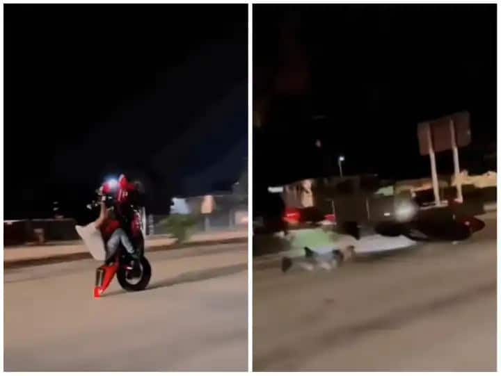 ਸੋਸ਼ਲ ਮੀਡੀਆ 'ਤੇ ਸਾਹਮਣੇ ਆਈ ਵੀਡੀਓ 'ਚ ਇੱਕ ਵਿਅਕਤੀ ਸੁਪਰਫਾਸਟ ਬਾਈਕ ਦੀ ਸਵਾਰੀ ਕਰਦਾ ਨਜ਼ਰ ਆ ਰਿਹਾ ਹੈ। ਬਾਈਕ ਚਲਾਉਂਦੇ ਹੋਏ ਉਹ ਇਸ 'ਤੇ ਸਟੰਟ ਅਜ਼ਮਾਉਂਦੇ ਨਜ਼ਰ ਆ ਰਹੇ ਹਨ। ਇਸ ਦੌਰਾਨ ਬਾਈਕ ਦੀ ਸਪੀਡ ਵਧਾਉਣ ਦੇ ਨਾਲ-ਨਾਲ ਬਾਈਕ ਨੂੰ ਪਿਛਲੇ ਪਹੀਏ 'ਤੇ ਚਲਾਉਣ ਦੇ ਨਾਲ-ਨਾਲ ਅਗਲੇ ਪਹੀਏ ਨੂੰ ਹਵਾ 'ਚ ਸਿੱਧਾ ਖੜ੍ਹਾ ਕਰ ਦਿੰਦਾ ਹੈ।