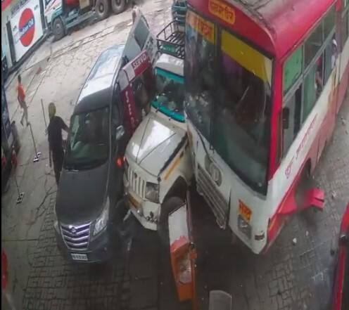 ਅਜਿਹੇ 'ਚ ਖੁਸ਼ਕਿਸਮਤੀ ਇਹ ਰਹੀ ਕਿ ਵੱਡਾ ਹਾਦਸਾ ਹੋਣ ਤੋਂ ਵਾਲ-ਵਾਲ ਬਚਾਅ ਹੋ ਗਿਆ। ਦਰਅਸਲ ਇਹ ਪੂਰੀ ਘਟਨਾ ਪੈਟਰੋਲ ਪੰਪ 'ਤੇ ਲੱਗੇ ਸੀਸੀਟੀਵੀ ਕੈਮਰੇ 'ਚ ਕੈਦ ਹੋ ਗਈ ਹੈ। ਦੱਸ ਦੇਈਏ ਕਿ ਰੋਡਵੇਜ਼ ਦੀ ਬੱਸ ਦਿੱਲੀ ਤੋਂ ਹਰਿਦੁਆਰ ਜਾ ਰਹੀ ਸੀ।