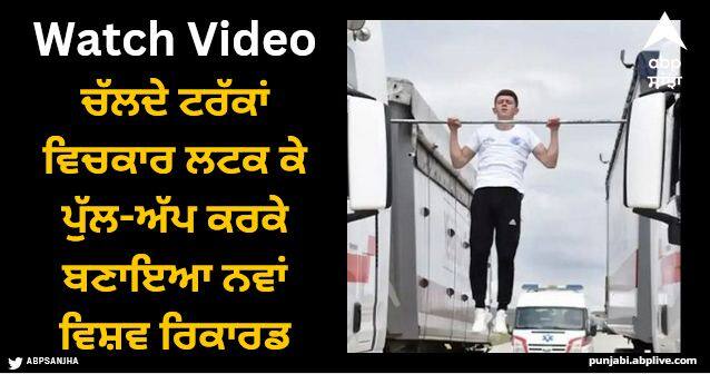 Viral Video: 18 ਸਾਲਾ ਅਰਮੀਨੀਆਈ ਕਿਸ਼ੋਰ ਗ੍ਰਿਗੋਰ ਮਾਨੁਕਯਾਨ ਨੇ ਦੋ ਚੱਲਦੇ ਟਰੱਕਾਂ ਦੇ ਵਿਚਕਾਰ ਲਟਕਦੀ ਇੱਕ ਬਾਰ 'ਤੇ 44 ਪੁੱਲ-ਅੱਪ ਕਰਕੇ ਇੱਕ ਸ਼ਾਨਦਾਰ ਵੀਡੀਓ ਬਣਾਈ ਹੈ। ਉਸ ਦੇ ਕਾਰਨਾਮੇ ਨੇ ਉਸ ਨੂੰ ਇਸ ਚੁਣੌਤੀਪੂਰਨ ਸੈੱਟਅੱਪ ਵਿੱਚ ਲਗਾਤਾਰ ਸਭ ਤੋਂ ਵੱਧ ਪੁੱਲ-ਅੱਪ ਕਰਨ ਲਈ ਗਿਨੀਜ਼ ਵਰਲਡ ਰਿਕਾਰਡ ਹਾਸਲ ਕੀਤਾ। ਵਿਸ਼ਵ ਰਿਕਾਰਡ ਬਣਾਉਣ ਵਾਲਾ ਇਹ ਨੌਜਵਾਨ ਆਪਣੀ ਪ੍ਰਾਪਤੀ ਆਪਣੇ ਦੇਸ਼ ਦੇ ਸ਼ਹੀਦ ਸੈਨਿਕਾਂ ਨੂੰ ਸਮਰਪਿਤ ਕਰ ਰਿਹਾ ਹੈ।