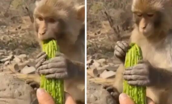 ਇਸ ਤੋਂ ਬਾਅਦ ਇਕ ਹੋਰ ਬਾਂਦਰ ਕਰੇਲੇ 'ਤੇ ਹੱਥ ਸਾਫ ਕਰਦਾ ਨਜ਼ਰ ਆ ਰਿਹਾ ਹੈ। ਜਿਵੇਂ ਹੀ ਕੋਈ ਹੋਰ ਬਾਂਦਰ ਕਰੇਲੇ ਨੂੰ ਦੰਦਾਂ ਨਾਲ ਕੱਟਦਾ ਹੈ, ਤਾਂ ਉਸ ਦੇ ਮੂੰਹ ਵਿੱਚ ਕਰੇਲੇ ਦਾ ਤਿੱਖਾ ਸੁਆਦ ਫੈਲ ਜਾਂਦਾ ਹੈ। ਇਸ ਨਾਲ ਉਸ ਦਾ ਮਨ ਉਲਝਦਾ ਹੈ ਅਤੇ ਫਿਰ ਉਹ ਕਰੇਲਾ ਖਾਣ ਤੋਂ ਵੀ ਇਨਕਾਰ ਕਰ ਦਿੰਦਾ ਹੈ। ਫਿਲਹਾਲ ਇਹ ਵੀਡੀਓ ਸੋਸ਼ਲ ਮੀਡੀਆ 'ਤੇ ਤੇਜ਼ੀ ਨਾਲ ਵਾਇਰਲ ਹੋ ਰਿਹਾ ਹੈ।