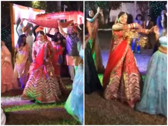 ਤੇਜ਼ੀ ਨਾਲ ਵਾਇਰਲ ਹੋ ਰਹੇ ਵੀਡੀਓ 'ਚ ਦਿਖ ਰਿਹਾ ਹੈ ਕਿ ਕਿਸ ਤਰ੍ਹਾਂ ਜੈ ਮਾਲਾ ਦੀਆਂ ਰਸਮਾਂ ਲਈ ਮੰਡਪ ਵੱਲ ਆਉਂਦੀ ਲਾੜੀ 'ਮੇਰਾ ਪੀਆ ਘਰ ਆਇਆ' ਗਾਣੇ 'ਤੇ ਧਮਾਕੇਦਾਰ ਸਟੈੱਪ ਕਰਦੀ ਹੈ।