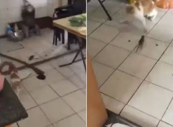 ਬਿੱਲੀ ਦਾ ਪਿੱਛਾ ਕਰਦਾ ਚੂਹਾ- ਫਿਲਹਾਲ ਸੋਸ਼ਲ ਮੀਡੀਆ 'ਤੇ ਇਨ੍ਹੀਂ ਦਿਨੀਂ ਇੱਕ ਅਜਿਹਾ ਹੀ ਵੀਡੀਓ ਸਾਹਮਣੇ ਆਇਆ ਹੈ, ਜਿਸ 'ਚ ਇੱਕ ਬਿੱਲੀ ਘਰ ਦੇ ਅੰਦਰ ਚੂਹੇ ਨੂੰ ਦੇਖ ਕੇ ਡਰ ਜਾਂਦੀ ਹੈ ਅਤੇ ਉਨ੍ਹਾਂ ਤੋਂ ਆਪਣੀ ਜਾਨ ਬਚਾਉਣ ਲਈ ਕਮਰੇ ਦੇ ਹਰ ਕੋਨੇ 'ਚ ਭੱਜਦੀ ਨਜ਼ਰ ਆ ਰਹੀ ਹੈ। ਜਿਸ ਨੂੰ ਦੇਖ ਕੇ ਯੂਜ਼ਰਸ ਹੈਰਾਨ ਹਨ ਅਤੇ ਇਹ ਵੀਡੀਓ ਸੋਸ਼ਲ ਮੀਡੀਆ 'ਤੇ ਤੇਜ਼ੀ ਨਾਲ ਵਾਇਰਲ ਹੋ ਰਿਹਾ ਹੈ। ਵੀਡੀਓ ਨੂੰ ਸੋਸ਼ਲ ਮੀਡੀਆ ਦੇ ਕਈ ਪਲੇਟਫਾਰਮਾਂ 'ਤੇ ਪੋਸਟ ਕੀਤਾ ਗਿਆ ਹੈ। ਇਸ ਵੀਡੀਓ ਨੂੰ ਟਵਿੱਟਰ 'ਤੇ @shahshowkat07 ਨਾਮ ਦੇ ਅਕਾਊਂਟ ਤੋਂ ਸ਼ੇਅਰ ਕੀਤਾ ਗਿਆ ਹੈ।