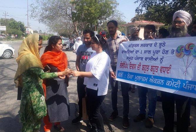 ਕੈਪਟਨ ਸਰਕਾਰ ਦਾ ਇੱਕ ਸਾਲ ਪੂਰਾ ਹੋਣ 'ਤੇ ਵੰਡੇ 'ਲੌਲੀਪੌਪ'
