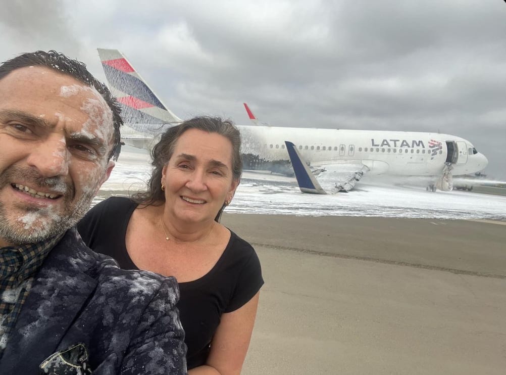 ਤਸਵੀਰ ਵਿੱਚ, LATAM ਏਅਰਲਾਈਨਜ਼ ਦੇ ਜਹਾਜ਼ ਨੂੰ ਰਨਵੇ 'ਤੇ ਅੰਸ਼ਕ ਤੌਰ 'ਤੇ ਸੜਿਆ ਦੇਖਿਆ ਜਾ ਸਕਦਾ ਹੈ, ਇਸਦੇ ਇੱਕ ਖੰਭ ਜ਼ਮੀਨ 'ਤੇ ਸੱਜੇ ਪਾਸੇ ਝੁਕਿਆ ਹੋਇਆ ਹੈ। ਜਾਣਕਾਰੀ ਮੁਤਾਬਕ LATAM ਏਅਰਲਾਈਨਜ਼ ਦੇ ਜਹਾਜ਼ ਨੂੰ ਰਨਵੇਅ 'ਤੇ ਫਾਇਰ ਇੰਜਣ ਨਾਲ ਟਕਰਾਉਣ ਤੋਂ ਬਾਅਦ ਅੱਗ ਲੱਗ ਗਈ। ਜਿਸ ਨੂੰ ਫਾਇਰ ਬ੍ਰਿਗੇਡ ਦੀ ਟੀਮ ਨੇ ਸਮੇਂ ਸਿਰ ਕਾਬੂ ਕਰ ਲਿਆ। ਫਿਲਹਾਲ ਸੋਸ਼ਲ ਮੀਡੀਆ ਯੂਜ਼ਰਸ ਇਸ ਤਰ੍ਹਾਂ ਸੈਲਫੀ ਲੈਣ ਲਈ ਜੋੜੇ ਦੀ ਆਲੋਚਨਾ ਕਰ ਰਹੇ ਹਨ।