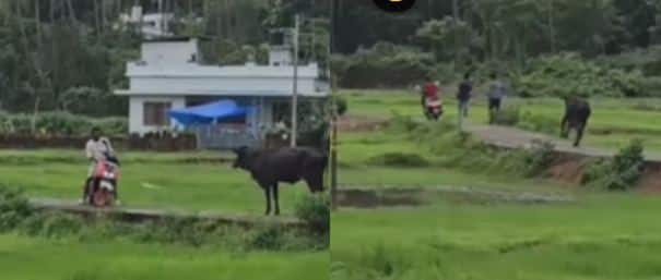 ਜੇਕਰ ਤੁਹਾਡੇ ਕੋਲ ਵੀ ਲਾਲ ਰੰਗ ਦੀ ਸਕੂਟੀ ਹੈ ਤਾਂ ਇਸ ਨੂੰ ਕਦੇ ਵੀ ਗਾਂ ਦੇ ਨੇੜੇ ਨਾ ਲਿਜਾਓ। ਇਸ ਵੀਡੀਓ ਨੂੰ ਦੇਖਣ ਤੋਂ ਬਾਅਦ ਤੁਹਾਨੂੰ ਇਹੀ ਸਲਾਹ ਦਿੱਤੀ ਜਾ ਸਕਦੀ ਹੈ। ਇਸ ਵੀਡੀਓ 'ਚ ਕੁਝ ਲੜਕੇ ਆਪਣੀ ਸਕੂਟੀ 'ਤੇ ਜਾ ਰਹੇ ਸਨ। ਉਦੋਂ ਹੀ ਇੱਕ ਗਾਂ ਉਸਦੇ ਰਾਹ ਵਿੱਚ ਆ ਗਈ। ਇਸ ਗਾਂ ਨੇ ਪਹਿਲਾਂ ਲਾਲ ਸਕੂਟੀ ਵੱਲ ਦੇਖਿਆ। ਮੁੰਡੇ ਸਮਝ ਗਏ ਕਿ ਗਾਂ ਦੀ ਨੀਅਤ ਠੀਕ ਨਹੀਂ ਸੀ। ਉਸ ਨੇ ਸਕੂਟੀ ਉਥੇ ਹੀ ਛੱਡ ਦਿੱਤੀ। ਹਾਲਾਂਕਿ, ਇੱਕ ਲੜਕੇ ਨੇ ਸਕੂਟੀ ਵਾਪਸ ਲੈਣ ਦੀ ਹਿੰਮਤ ਕੀਤੀ, ਪਰ ਗਾਂ ਨੇ ਇਹ ਵੇਖ ਲਿਆ ਅਤੇ ਲੜਕੇ ਨੂੰ ਤੁਰੰਤ ਭਜਾਇਆ।