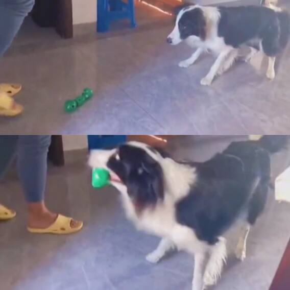 ਵਾਇਰਲ ਵੀਡੀਓ 'ਚ ਕੁੱਤੇ ਦੇ ਸਾਹਮਣੇ ਪਲਾਸਟਿਕ ਦੀ ਬੋਤਲ ਮਰੋੜੀ ਹੋਈ ਹੈ। ਉਹ ਬੋਤਲ ਨੂੰ ਬੜੇ ਧਿਆਨ ਨਾਲ ਦੇਖ ਰਿਹਾ ਸੀ। ਜਿਸ 'ਤੇ ਉਥੇ ਖੜ੍ਹੀ ਇੱਕ ਔਰਤ ਆਪਣੇ ਪੈਰਾਂ ਨਾਲ ਲੱਤ ਮਾਰਨ ਦੀ ਕੋਸ਼ਿਸ਼ ਕਰ ਰਹੀ ਸੀ ਪਰ ਇਸ ਦੌਰਾਨ ਉਹ ਕੁੱਤੇ ਨੂੰ ਵੀ ਉਲਝਾ ਰਹੀ ਸੀ ਤਾਂ ਕਿ ਕੁੱਤੇ ਨੂੰ ਲੱਤ ਦੀ ਦਿਸ਼ਾ ਦਾ ਪਤਾ ਨਾ ਲੱਗੇ। ਫਿਰ ਵੀ, ਕੁੱਤੇ ਨੇ ਗੋਲਕੀਪਿੰਗ ਦਾ ਅਦਭੁਤ ਹੁਨਰ ਦਿਖਾਇਆ ਅਤੇ ਭੰਬਲਭੂਸਾ ਪੈਦਾ ਕਰਨ ਦੇ ਬਾਵਜੂਦ, ਔਰਤ ਨੇ ਬੋਤਲ ਨੂੰ ਕਲਿੱਕ ਕੀਤਾ, ਕੁੱਤੇ ਨੇ ਬਹੁਤ ਚੁਸਤੀ ਦਿਖਾਈ ਅਤੇ ਜਲਦੀ ਨਾਲ ਬੋਤਲ ਨੂੰ ਜਬਾੜੇ ਵਿੱਚ ਫੜ ਲਿਆ।