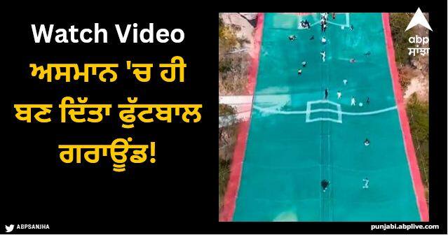ਵਾਇਰਲ ਹੋ ਰਿਹਾ ਇਹ ਹੈਰਾਨ ਕਰਨ ਵਾਲਾ ਵੀਡੀਓ ਚੀਨ ਦੇ ਝੇਜਿਆਂਗ ਦਾ ਦੱਸਿਆ ਜਾ ਰਿਹਾ ਹੈ, ਜਿਸ ਨੂੰ ਦੇਖ ਕੇ ਹੈਰਾਨੀ ਹੁੰਦੀ ਹੈ। ਵੀਡੀਓ 'ਚ ਤੁਸੀਂ ਫੁੱਟਬਾਲ ਦਾ ਮੈਦਾਨ ਜ਼ਰੂਰ ਦੇਖ ਰਹੇ ਹੋਵੋਗੇ। ਹੈਰਾਨੀ ਵਾਲੀ ਗੱਲ ਇਹ ਹੈ ਕਿ ਵੀਡੀਓ 'ਚ ਦਿਖਾਈ ਦੇ ਰਹੀ ਇਹ ਗਰਾਊਂਡ ਜ਼ਮੀਨ 'ਤੇ ਨਹੀਂ ਸਗੋਂ ਅਸਮਾਨ 'ਚ ਬਣਿਆ ਹੋਈ ਹੈ। ਵੀਡੀਓ 'ਚ ਦੇਖਿਆ ਜਾ ਸਕਦਾ ਹੈ ਕਿ ਇਹ ਮੈਦਾਨ ਦੋ ਪਹਾੜਾਂ ਦੇ ਵਿਚਕਾਰ ਬਚੀ ਜਗ੍ਹਾ 'ਤੇ ਜਾਲ ਦੀ ਮਦਦ ਨਾਲ ਬਣਾਇਆ ਗਿਆ ਹੈ, ਜਿਸ 'ਤੇ ਕੁਝ ਲੋਕ ਮਸਤੀ ਨਾਲ ਖੇਡਦੇ ਵੀ ਨਜ਼ਰ ਆ ਰਹੇ ਹਨ।