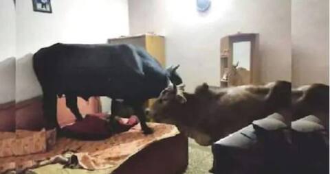 ਸਾਨ੍ਹ ਉਨ੍ਹਾਂ ਨੂੰ ਘੜੀਸਦਾ ਹੋਇਆ ਬੈੱਡਰੂਮ ਤਕ ਲੈ ਗਿਆ। ਦੂਜਾ ਸਾਨ੍ਹ ਬੈੱਡ 'ਤੇ ਚੜ੍ਹ ਗਿਆ। ਇਸ ਦੌਰਾਨ ਦੋ ਸਾਨ੍ਹ ਘਰ 'ਚ ਦਾਖਲ ਹੁੰਦੇ ਦੇਖ ਪਿੱਛੇ ਹੀ ਦੋ ਹੋਰ ਸਾਨ੍ਹ ਤੇ ਇੱਕ ਗਾਂ ਵੀ ਘਰ 'ਚ ਆਣ ਵੜੀ ਤੇ ਆਪਸ 'ਚ ਲੜਨ ਲੱਗੇ।