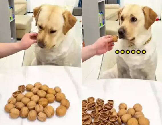 ਸੋਸ਼ਲ ਮੀਡੀਆ 'ਤੇ ਵਾਇਰਲ ਇਸ ਵੀਡੀਓ 'ਚ ਤੁਸੀਂ ਇੱਕ ਕੁੱਤੇ ਨੂੰ ਵੇਖ ਸਕਦੇ ਹੋ। ਵੀਡੀਓ ਦੇਖਣ ਤੋਂ ਬਾਅਦ ਪਤਾ ਚੱਲਦਾ ਹੈ ਕਿ ਕੁੱਤਾ ਪਾਲਤੂ ਹੈ। ਕੁੱਤੇ ਦੇ ਸਾਹਮਣੇ ਇੱਕ ਪਲੇਟ ਰੱਖੀ ਹੈ, ਜਿਸ ਵਿੱਚ ਬਹੁਤ ਸਾਰੇ ਅਖਰੋਟ (Walnuts) ਹਨ। ਵੀਡੀਓ ਵਿੱਚ ਕੁੱਤੇ ਦੇ ਨਾਲ ਇਕ ਵਿਅਕਤੀ ਵੀ ਮੌਜੂਦ ਹੈ, ਜੋ ਉਸ ਤੋਂ ਅਖਰੋਟ ਤੁੜਵਾ ਰਿਹਾ ਹੈ। ਵਿਅਕਤੀ ਕੁੱਤੇ ਦੇ ਮੂੰਹ ਵਿੱਚ ਅਖਰੋਟ ਪਾਉਂਦਾ ਹੈ ਅਤੇ ਜਿਵੇਂ ਹੀ ਕੁੱਤਾ ਇਸ ਨੂੰ ਤੋੜਦਾ ਹੈ, ਉਹ ਇਸਨੂੰ ਬਾਹਰ ਕੱਢ ਕੇ ਖਾ ਜਾਂਦਾ ਹੈ।