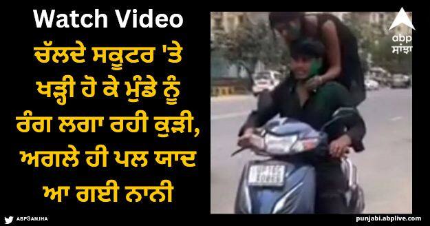 Viral Video: ਹੋਲੀ 'ਤੇ ਲੋਕਾਂ ਵੱਲੋਂ ਹੰਗਾਮਾ ਕਰਨ ਦੀਆਂ ਕਈ ਵੀਡੀਓਜ਼ ਤੁਸੀਂ ਦੇਖੀਆਂ ਹੋਣਗੀਆਂ ਪਰ ਵਾਇਰਲ ਹੋ ਰਹੀ ਇਸ ਵੀਡੀਓ ਨੂੰ ਦੇਖ ਕੇ ਤੁਸੀਂ ਵੀ ਦੰਗ ਰਹਿ ਜਾਓਗੇ। ਸਿਰਫ 14 ਸੈਕਿੰਡ ਦੇ ਇਸ ਵੀਡੀਓ 'ਚ ਇੱਕ ਲੜਕੀ ਚੱਲਦੇ ਸਕੂਟਰ 'ਤੇ ਖੜ੍ਹੀ ਹੋਲੀ ਖੇਡਦੀ ਨਜ਼ਰ ਆ ਰਹੀ ਹੈ ਪਰ ਅਗਲੇ ਹੀ ਪਲ ਉਸ ਨਾਲ ਜੋ ਹੋਇਆ, ਉਹ ਸ਼ਾਇਦ ਉਸ ਨੂੰ ਜ਼ਿੰਦਗੀ ਭਰ ਨਹੀਂ ਭੁੱਲੇਗੀ। ਦੇਖੋ ਪੂਰੀ ਵੀਡੀਓ ।