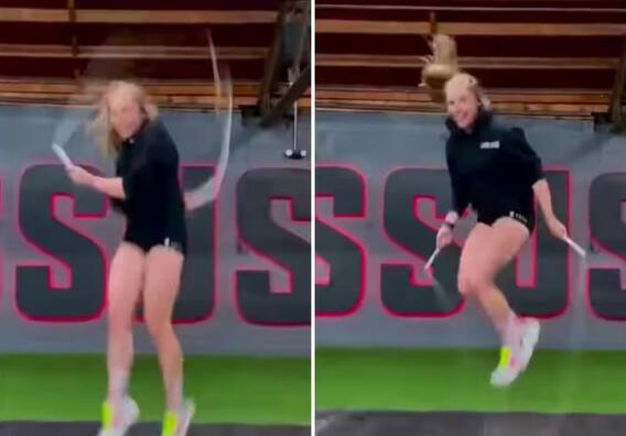 Trending Video: ਸੋਸ਼ਲ ਮੀਡੀਆ 'ਤੇ ਅਜਿਹੀਆਂ ਕਈ ਵੀਡੀਓਜ਼ ਸਾਹਮਣੇ ਆਉਂਦੀਆਂ ਰਹਿੰਦੀਆਂ ਹਨ, ਜਿਨ੍ਹਾਂ 'ਚ ਲੋਕ ਅਜੀਬੋ-ਗਰੀਬ ਕਾਰਨਾਮੇ ਕਰਦੇ ਹੋਏ ਕੈਦ ਹੋ ਜਾਂਦੇ ਹਨ। ਓਲੰਪਿਕ, ਏਸ਼ੀਅਨ ਅਤੇ ਰਾਸ਼ਟਰਮੰਡਲ ਖੇਡਾਂ ਦੌਰਾਨ ਜਿਮਨਾਸਟਿਕ ਵਰਗ ਵਿੱਚ ਉੱਚ ਪੱਧਰੀ ਪ੍ਰਦਰਸ਼ਨ ਦੇਖਣ ਨੂੰ ਮਿਲਦਾ ਹੈ, ਲੋਕ ਉਨ੍ਹਾਂ ਦੀ ਸਰੀਰਕ ਲਚਕਤਾ ਅਤੇ ਕਸਰਤ ਨੂੰ ਦੇਖ ਕੇ ਦੰਗ ਰਹਿ ਜਾਂਦੇ ਹਨ। ਕੁੜੀ ਦੇ ਰੱਸੀ ਕੁੱਦਣ ਦਾ ਅਦਭੁਤ ਅੰਦਾਜ਼ ਦੇਖ ਕੇ ਕਿਸੇ ਦਾ ਵੀ ਸਿਰ ਝੁਕ ਜਾਵੇਗਾ। ਇਸ ਵੀਡੀਓ ਨੂੰ ਦੇਖਣ ਤੋਂ ਬਾਅਦ ਤੁਸੀਂ ਵੀ ਇਸ ਬੱਚੀ ਦੇ ਵਿਲੱਖਣ ਹੁਨਰ ਦੀ ਤਾਰੀਫ਼ ਕੀਤੇ ਬਿਨਾਂ ਨਹੀਂ ਰਹਿ ਸਕੋਗੇ। ਰੱਸੀ ਕੁੱਦਦੇ ਹੋਏ ਇਸ ਕੁੜੀ ਨੇ ਕੁਝ ਦਿਲਚਸਪ ਹਰਕਤਾਂ ਵੀ ਕੀਤੀਆਂ, ਜਿਸ ਨੂੰ ਦੇਖ ਕੇ ਕੋਈ ਵੀ ਦੰਗ ਰਹਿ ਜਾਵੇਗਾ।
