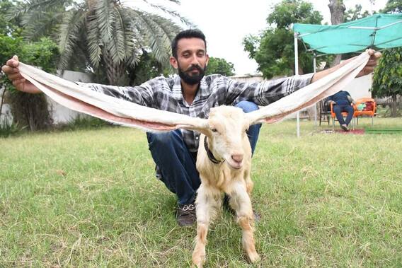 Goat in Pakistan with 21-Inch-Long Ears: ਪਾਕਿਸਤਾਨ ਦੇ ਕਰਾਚੀ ਵਿੱਚ ਇੱਕ ਬੱਕਰੀ ਕਾਫ਼ੀ ਸੁਰਖੀਆਂ 'ਚ ਹੈ।ਇਸ ਬੱਕਰੀ ਦਾ ਜਨਮ ਜੁਲਾਈ ਮਹੀਨੇ ਹੀ ਹੋਈਆ ਹੈ। ਇਸ ਦੇ ਮਾਲਕ ਨੇ ਇਸ ਬੱਕਰੀ ਦਾ ਨਾਮ ਸਿੰਬਾ ਰੱਖਿਆ ਹੈ। ਹੁਣ ਆਪਣੇ ਅਸਾਧਾਰਨ ਲੰਬੇ ਕੰਨਾਂ ਦੀ ਬਦੌਲਤ ਇਹ ਬੱਕਰੀ ਇੰਟਰਨੈਟ ਸੈਨਸੇਸ਼ਨ ਬਣੀ ਹੋਈ ਹੈ।