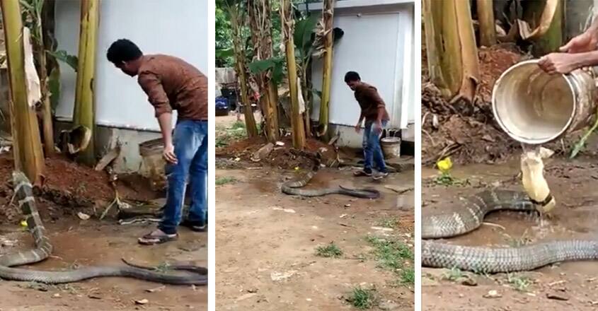 ਇੱਕ ਹੈਰਾਨ ਕਰਨ ਵਾਲੀ ਵੀਡੀਓ ਸੋਸ਼ਲ ਮੀਡੀਆ 'ਤੇ ਬਹੁਤ ਵਾਇਰਲ ਹੋ ਰਹੀ ਹੈ ਜਿਸ ਵਿੱਚ ਇੱਕ ਆਦਮੀ ਕਿੰਗ ਕੋਬਰਾ ਨੂੰ ਨਹਾਉਂਦੇ ਹੋਏ ਦਿਖਾਈ ਦੇ ਰਿਹਾ ਹੈ।