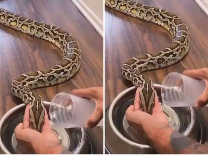 ਵੀਡੀਓ ਨੂੰ @snakes.empire ਨਾਮ ਦੇ ਇੰਸਟਾਗ੍ਰਾਮ ਅਕਾਊਂਟ 'ਤੇ ਸ਼ੇਅਰ ਕੀਤਾ ਗਿਆ ਹੈ। ਜਿਸ ਵਿੱਚ ਇੱਕ ਵਿਅਕਤੀ ਆਪਣੇ ਘਰ ਦੇ ਅੰਦਰ ਇੱਕ ਵਿਸ਼ਾਲ ਅਜਗਰ ਨੂੰ ਆਪਣੇ ਹੱਥਾਂ ਨਾਲ ਪਾਣੀ ਦਿੰਦਾ ਦੇਖਿਆ ਜਾ ਸਕਦਾ ਹੈ। ਅਜਿਹਾ ਕਰਦਿਆਂ ਜਿੱਥੇ ਕਿਸੇ ਵੀ ਵਿਅਕਤੀ ਦੀ ਰੂਹ ਕੰਬ ਜਾਵੇਗੀ, ਉੱਥੇ ਹੀ ਇਹ ਵਿਅਕਤੀ ਅਜਗਰ ਨੂੰ ਪਾਣੀ ਦਿੰਦੇ ਹੋਏ ਆਸਾਨੀ ਨਾਲ ਨਜ਼ਰ ਆ ਰਿਹਾ ਹੈ। ਇਸ ਦੇ ਨਾਲ ਹੀ ਅਜਗਰ ਵੀ ਪਾਣੀ ਪੀਂਦੇ ਹੋਏ ਵਿਅਕਤੀ 'ਤੇ ਪੂਰਾ ਭਰੋਸਾ ਕਰਦਾ ਨਜ਼ਰ ਆਉਂਦਾ ਹੈ, ਉਹ ਕਿਸੇ ਵੀ ਤਰ੍ਹਾਂ ਨਾਲ ਵਿਅਕਤੀ 'ਤੇ ਹਮਲਾ ਕਰਦਾ ਨਜ਼ਰ ਨਹੀਂ ਆਉਂਦਾ।