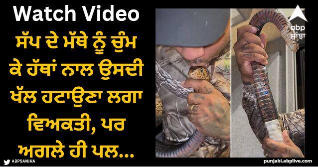 Viral Video: ਦੁਨੀਆ ਭਰ ਵਿੱਚ ਸੱਪਾਂ ਦੀਆਂ ਬਹੁਤ ਸਾਰੀਆਂ ਕਿਸਮਾਂ ਹਨ, ਜਿਨ੍ਹਾਂ ਵਿੱਚੋਂ ਕੁਝ ਬਹੁਤ ਸ਼ਾਂਤ ਹਨ ਅਤੇ ਕੁਝ ਬਹੁਤ ਡਰਾਉਣੇ ਹਨ। ਹਾਲਾਂਕਿ ਕਈ ਲੋਕ ਅਜਿਹੇ ਹਨ ਜੋ ਸੱਪਾਂ ਦਾ ਜ਼ਿਕਰ ਕਰਨ 'ਤੇ ਹੀ ਡਰ ਜਾਂਦੇ ਹਨ ਪਰ ਕੁਝ ਲੋਕ ਅਜਿਹੇ ਵੀ ਹਨ ਜੋ ਇਨ੍ਹਾਂ ਖੌਫਨਾਕ ਜਾਨਵਰਾਂ ਨਾਲ ਦੋਸਤੀ ਕਰਦੇ ਨਜ਼ਰ ਆਉਂਦੇ ਹਨ। ਹਾਲ ਹੀ 'ਚ ਇੱਕ ਅਜਿਹਾ ਹੀ ਵੀਡੀਓ ਸਾਹਮਣੇ ਆਇਆ ਹੈ, ਜਿਸ 'ਚ ਇੱਕ ਵਿਅਕਤੀ ਪਹਿਲਾਂ ਸੱਪ ਦੇ ਮੱਥੇ ਨੂੰ ਚੁੰਮਦਾ ਹੈ ਅਤੇ ਫਿਰ ਬੜੇ ਪਿਆਰ ਅਤੇ ਆਰਾਮ ਨਾਲ ਆਪਣੇ ਹੱਥਾਂ ਨਾਲ ਸੱਪ ਦੀ ਖੱਲ ਕੱਢਦਾ ਨਜ਼ਰ ਆ ਰਿਹਾ ਹੈ। ਵੀਡੀਓ 'ਚ ਵਿਅਕਤੀ ਦੀ ਇਸ ਹਰਕਤ ਨੂੰ ਦੇਖ ਕੇ ਤੁਹਾਡੇ ਵੀ ਹੋਸ਼ ਉੱਡ ਜਾਣਗੇ।