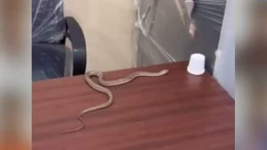 ਭਾਜਪਾ ਨੇਤਾ ਵਿਕਰਮ ਗੌੜ ਨੇ ਟਵਿੱਟਰ 'ਤੇ ਇੱਕ ਵੀਡੀਓ ਪੋਸਟ ਕੀਤਾ ਹੈ, ਜਿਸ ਦੀ ਕਾਫੀ ਚਰਚਾ ਹੋ ਰਹੀ ਹੈ। ਇਸ ਵੀਡੀਓ ਵਿੱਚ ਇੱਕ ਸੱਪ ਇੱਕ ਮੇਜ਼ ਉੱਤੇ ਰੇਂਗਦਾ ਨਜ਼ਰ ਆ ਰਿਹਾ ਹੈ। ਤੁਹਾਨੂੰ ਲੱਗੇਗਾ ਕਿ ਸ਼ਾਇਦ ਕੋਈ ਸੱਪ ਕਿਸੇ ਦਫ਼ਤਰ ਵਿੱਚ ਵੜ ਗਿਆ ਹੈ। ਪਰ ਜਦੋਂ ਤੁਹਾਨੂੰ ਪਤਾ ਲੱਗੇਗਾ ਕਿ ਇਹ ਆਪਣੇ ਆਪ ਅੰਦਰ ਨਹੀਂ ਆਇਆ, ਕਿਸੇ ਨੇ ਇਸ ਨੂੰ ਲਿਆਂਦਾ ਅਤੇ ਮੇਜ਼ 'ਤੇ ਛੱਡ ਦਿੱਤਾ, ਤਾਂ ਤੁਸੀਂ ਹੈਰਾਨ ਹੋ ਜਾਵੋਗੇ। ਇਹ ਵੀਡੀਓ ਗ੍ਰੇਟਰ ਹੈਦਰਾਬਾਦ ਮਿਊਂਸੀਪਲ ਕਾਰਪੋਰੇਸ਼ਨ ਯਾਨੀ ਹੈਦਰਾਬਾਦ ਮਿਊਂਸੀਪਲ ਕਾਰਪੋਰੇਸ਼ਨ ਦਾ ਹੈ। ਹੈਦਰਾਬਾਦ ਤੇਲੰਗਾਨਾ ਦੀ ਰਾਜਧਾਨੀ ਹੈ ਜਿੱਥੇ ਕੇ ਚੰਦਰਸ਼ੇਖਰ ਰਾਓ ਮੁੱਖ ਮੰਤਰੀ ਹਨ।