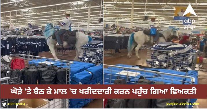 ਦਰਅਸਲ, ਇਸ ਵੀਡੀਓ 'ਚ ਇੱਕ ਵਿਅਕਤੀ ਸ਼ਾਪਿੰਗ ਕਰਨ ਦੇ ਇਰਾਦੇ ਨਾਲ ਮਾਲ 'ਚ ਆਇਆ ਸੀ ਪਰ ਹੈਰਾਨੀ ਦੀ ਗੱਲ ਇਹ ਸੀ ਕਿ ਉਹ ਘੋੜੇ 'ਤੇ ਸਵਾਰ ਹੋ ਕੇ ਆਇਆ ਸੀ। ਉਹ ਘੋੜੇ 'ਤੇ ਬੈਠਾ ਮਾਲ ਦੇ ਅੰਦਰ ਘੁੰਮਦਾ ਦੇਖਿਆ ਗਿਆ। ਵੀਡੀਓ 'ਚ ਤੁਸੀਂ ਦੇਖ ਸਕਦੇ ਹੋ ਕਿ ਵਿਅਕਤੀ ਚਿੱਟੇ ਘੋੜੇ 'ਤੇ ਸਵਾਰ ਹੋ ਕੇ ਸ਼ਾਪਿੰਗ ਮਾਲ ਦੇ ਅੰਦਰ ਘੁੰਮ ਰਿਹਾ ਹੈ। ਇਸ ਦੌਰਾਨ ਉਸ ਦੇ ਹੱਥ 'ਚ ਬਾਲਟੀ ਵਰਗੀ ਕੋਈ ਚੀਜ਼ ਨਜ਼ਰ ਆ ਰਹੀ ਹੈ। ਸ਼ਾਇਦ ਉਸ ਨੇ ਉਹ ਬਾਲਟੀ ਮਾਲ ਤੋਂ ਖਰੀਦੀ ਹੋਵੇਗੀ ਪਰ ਇਸ ਤੋਂ ਇਲਾਵਾ ਉਹ ਹੋਰ ਕੁਝ ਵੀ ਖਰੀਦਦਾ ਨਜ਼ਰ ਨਹੀਂ ਆ ਰਿਹਾ। ਇਹ ਮਜ਼ਾਕੀਆ ਨਜ਼ਾਰਾ ਦੇਖ ਕੇ ਲੋਕਾਂ ਦੀਆਂ ਅੱਖਾਂ ਖੁੱਲ੍ਹੀਆਂ ਰਹਿ ਗਈਆਂ। ਜਦੋਂ ਉਹ ਮਾਲ ਤੋਂ ਬਾਹਰ ਆਉਣ ਲੱਗਾ ਤਾਂ ਉੱਥੇ ਮੌਜੂਦ ਲੋਕਾਂ ਨੇ ਉਸ ਦੀ ਵੀਡੀਓ ਵੀ ਬਣਾਉਣੀ ਸ਼ੁਰੂ ਕਰ ਦਿੱਤੀ।
