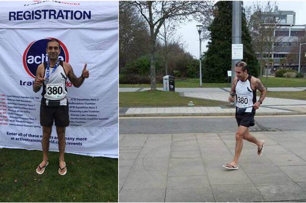 ਲੰਡਨ: ਨਵੀਆਂ ਮੱਲਾਂ ਮਾਰਨ ਵਾਲੇ ਪੰਜਾਬੀ ਅਕਸਰ ਹਰ ਖੇਤਰ ਵਿੱਚ ਮੋਹਰੀ ਰਹਿੰਦੇ ਹਨ। ਇਸੇ ਲੜੀ ਤਹਿਤ ਲੰਡਨ ਦੇ ਹੇਜ਼ ਵਿੱਚ ਰਹਿਣ ਵਾਲੇ ਪ੍ਰਦੀਪ ਮਿਨਹਾਸ ਨੇ ਚੱਪਲਾਂ ਪਾ ਕੇ ਮੈਰਾਥਨ ਦੌੜਨ ਦਾ ਵਿਸ਼ਵ ਰਿਕਾਰਡ ਤੋੜ ਕੇ ਨਵਾਂ ਰਿਕਾਰਡ ਕਾਇਮ ਕਰ ਦਿੱਤਾ ਹੈ।