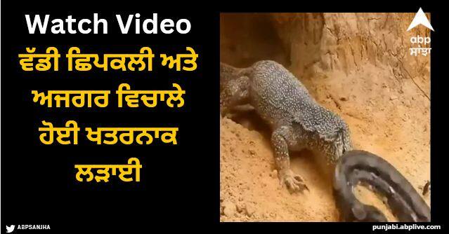 Viral Video: ਤੁਸੀਂ ਛਿਪਕਲੀਆਂ ਨੂੰ ਦੇਖਿਆ ਹੋਵੇਗਾ। ਆਮ ਤੌਰ 'ਤੇ ਉਹ ਘਰ ਦੀਆਂ ਕੰਧਾਂ 'ਤੇ ਇੱਧਰ-ਉੱਧਰ ਘੁੰਮਦੇ ਹੋਏ ਦਿਖ ਜਾਂਦੀਆਂ ਹਨ। ਭਾਵੇਂ ਇਹ ਆਕਾਰ ਵਿੱਚ ਬਹੁਤ ਛੋਟੀਆਂ ਹੁੰਦੀਆਂ ਹਨ ਪਰ ਕੀ ਤੁਸੀਂ ਜਾਣਦੇ ਹੋ ਕਿ ਧਰਤੀ 'ਤੇ ਕੁਝ ਅਜਿਹੀਆਂ ਕਿਰਲੀਆਂ ਹਨ ਜਿਨ੍ਹਾਂ ਦਾ ਆਕਾਰ ਮਗਰਮੱਛ ਜਿੰਨਾ ਵੱਡਾ ਹੈ। ਹਾਂ, ਉਨ੍ਹਾਂ ਨੂੰ ਮਾਨੀਟਰ ਕਿਰਲੀਆਂ ਵਜੋਂ ਜਾਣਿਆ ਜਾਂਦਾ ਹੈ। ਇਹ ਆਪਣੇ ਆਕਾਰ ਦੇ ਹਿਸਾਬ ਨਾਲ ਕਾਫੀ ਖਤਰਨਾਕ ਹਨ। ਇਹ ਬੱਕਰੀ ਅਤੇ ਹਿਰਨ ਵਰਗੇ ਵੱਡੇ ਜਾਨਵਰਾਂ ਦਾ ਵੀ ਆਸਾਨੀ ਨਾਲ ਸ਼ਿਕਾਰ ਕਰ ਲੈਂਦੇ ਹਨ। ਇਸ ਸਮੇਂ ਇਸ ਵਿਸ਼ਾਲ ਕਿਰਲੀ ਅਤੇ ਅਜਗਰ ਦੀ ਖਤਰਨਾਕ ਲੜਾਈ ਦਾ ਵੀਡੀਓ ਸੋਸ਼ਲ ਮੀਡੀਆ 'ਤੇ ਵਾਇਰਲ ਹੋ ਰਿਹਾ ਹੈ, ਜਿਸ ਨੂੰ ਦੇਖ ਕੇ ਲੋਕ ਕਾਫੀ ਹੈਰਾਨ ਹਨ।
