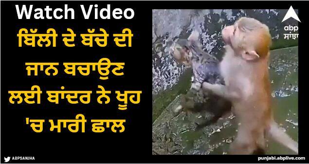 ਵਾਇਰਲ ਵੀਡੀਓ ਵਿੱਚ ਦੇਖਿਆ ਜਾ ਸਕਦਾ ਹੈ ਕਿ ਕਿਵੇਂ ਇੱਕ ਬਿੱਲੀ ਦਾ ਬੱਚਾ ਖੂਹ ਵਿੱਚ ਡਿੱਗਦਾ ਹੈ। ਜਿਵੇਂ ਹੀ ਬਾਂਦਰ ਨੂੰ ਪਤਾ ਲੱਗਾ ਕਿ ਬਿੱਲੀ ਦਾ ਬੱਚਾ ਖੂਹ 'ਚ ਫਸ ਗਿਆ ਹੈ, ਉਹ ਖੂਹ 'ਚ ਉਤਰ ਕੇ ਉਸ ਨੂੰ ਬਚਾਉਣ ਦੀ ਕੋਸ਼ਿਸ਼ ਕਰਨ ਲੱਗਾ। ਸੋਸ਼ਲ ਮੀਡੀਆ 'ਤੇ ਇਸ ਵੀਡੀਓ ਨੂੰ ਦੇਖਣ ਤੋਂ ਬਾਅਦ ਲੋਕ ਪੂਰੀ ਤਰ੍ਹਾਂ ਖੁਸ਼ ਨਜ਼ਰ ਆ ਰਹੇ ਹਨ।