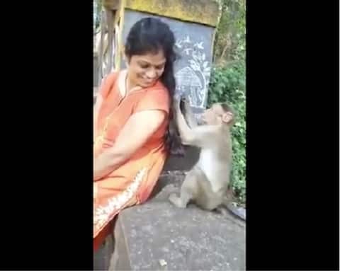 ਅਜਿਹੇ 'ਚ ਤਹਾਨੂੰ ਦਿਖਾ ਰਹੇ ਹਾਂ ਕਿ ਕਿਵੇਂ ਬਾਂਦਰ ਔਰਤ ਦੇ ਵਾਲਾਂ ਨੂੰ ਸੰਵਾਰ ਰਿਹਾ ਹੈ।