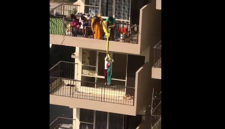 ਘਟਨਾ ਦੀ ਵੀਡੀਓ ਵਾਇਰਲ ਹੋ ਰਹੀ ਹੈ ਜਿਸ 'ਚ ਬੇਟੇ ਨੂੰ ਚਾਦਰ ਨਾਲ ਲਟਕਦਾ ਦਿਖਾਇਆ ਗਿਆ ਹੈ ਪਰ ਉਸਨੇ ਅਜਿਹਾ ਕਿਉਂ ਕੀਤਾ? ਸਾੜ੍ਹੀ ਜੋ ਨੌਵੀਂ ਮੰਜ਼ਿਲ 'ਤੇ ਇੱਕ ਬੰਦ ਘਰ ਦੀ ਬਾਲਕੋਨੀ 'ਚ ਡਿੱਗੀ ਸੀ। ਵੀਡੀਓ 'ਚ ਦਿਖਾਇਆ ਗਿਆ ਹੈ ਕਿ ਇਕ ਲੜਕਾ ਬੈੱਡਸ਼ੀਟ ਨਾਲ ਲਟਕ ਕੇ ਸਾੜ੍ਹੀ ਲਿਆਉਣ ਦੀ ਕੋਸ਼ਿਸ਼ ਕਰ ਰਿਹਾ ਹੈ ਜਦਕਿ ਉਸਦੀ ਮਾਂ ਅਤੇ ਪਰਿਵਾਰ ਦੇ ਹੋਰ ਮੈਂਬਰ ਉਸਨੂੰ ਖਿੱਚਦੇ ਹਨ। ਇਹ ਘਟਨਾ ਫਰੀਦਾਬਾਦ ਦੇ ਸੈਕਟਰ 82 ਦੀ ਇੱਕ ਸੁਸਾਇਟੀ ਵਿੱਚ ਪਿਛਲੇ ਹਫ਼ਤੇ ਵਾਪਰੀ। ਇਹ ਵੀਡੀਓ ਸਾਹਮਣੇ ਵਾਲੀ ਇਮਾਰਤ ਦੇ ਇੱਕ ਨਿਵਾਸੀ ਦੁਆਰਾ ਸ਼ੂਟ ਕੀਤਾ ਗਿਆ ਸੀ।