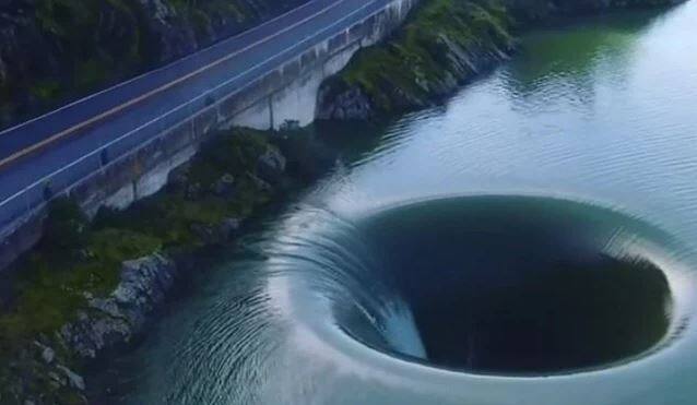 ਝੀਲ 4.7 ਮੀਟਰ ਤੋਂ ਉੱਪਰ ਉੱਠਣ 'ਤੇ ਪ੍ਰਤੀ ਸਕਿੰਟ ਲਗਭਗ 1,360 ਘਣ ਮੀਟਰ ਪਾਣੀ ਨੂੰ ਨਿਗਲਣ ਵਾਲੇ ਡਰੇਨ ਹੋਲ ਦੇ ਰੂਪ ਵਿੱਚ ਕੰਮ ਕਰਦਾ ਹੈ, ਜਿਸ ਨੂੰ "ਗਲੋਰੀ ਹੋਲ" ਜਾਂ "ਨਰਕ ਦਾ ਦਰਵਾਜ਼ਾ" ਕਿਹਾ ਜਾਂਦਾ ਹੈ। ਇਹ ਉਹ ਹੈ ਜੋ ਸਪਿਨਿੰਗ ਵੌਰਟੈਕਸ ਪ੍ਰਭਾਵ ਪੈਦਾ ਕਰਦਾ ਹੈ ਅਤੇ ਝੀਲ ਦੀ ਸਤ੍ਹਾ 'ਤੇ ਇਕ ਵਾਰ ਫਿਰ ਦੇਖਿਆ ਗਿਆ ਹੈ।