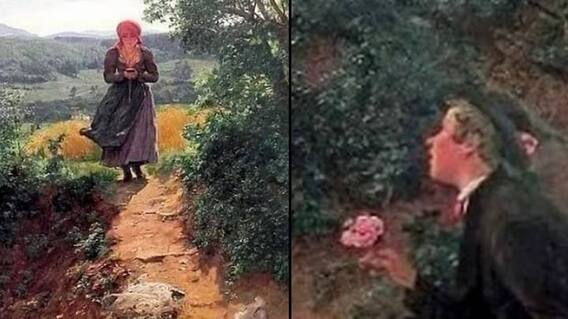 ਪੇਂਟਿੰਗ ਨੂੰ 'ਦ ਐਕਸਪੈਕਟਿਡ ਵਨ' ਵਜੋਂ ਜਾਣਿਆ ਜਾਂਦਾ ਹੈ। ਇਸ ਨੂੰ 1860 'ਚ ਆਸਟ੍ਰੀਆ ਦੇ ਚਿੱਤਰਕਾਰ ਫਰਡੀਨੈਂਡ ਜਾਰਜ ਵਾਲਡਮੁਲਰ ਵੱਲੋਂ ਬਣਾਇਆ ਗਿਆ ਸੀ। ਪੇਂਟਿੰਗ 'ਚ ਇੱਕ ਅੱਲ੍ਹੜ ਲੜਕੀ ਪਹਾੜਾਂ ਦੇ ਵਿਚਕਾਰ ਇੱਕ ਰਸਤੇ 'ਤੇ ਤੁਰਦੀ ਦਿਖਾਈ ਦੇ ਰਹੀ ਹੈ। ਰਸਤੇ 'ਚ ਥੋੜ੍ਹਾ ਅੱਗੇ ਇੱਕ ਮੁੰਡਾ ਹੱਥਾਂ 'ਚ ਫੁੱਲ ਲੈ ਕੇ ਬੇਸਬਰੀ ਨਾਲ ਇੰਤਜ਼ਾਰ ਕਰਦਾ ਦਿਖਾਈ ਦਿੰਦਾ ਹੈ। ਪਰ ਪੇਂਟਿੰਗ ਦਾ ਸਭ ਤੋਂ ਅਜੀਬ ਹਿੱਸਾ ਕੁੜੀ ਦੇ ਹੱਥ ਵਿੱਚ ਇੱਕ ਛੋਟਾ ਆਇਤਾਕਾਰ ਬਾਕਸ ਹੈ, ਜਿਸ ਨੂੰ ਉਹ ਧਿਆਨ ਨਾਲ ਦੇਖ ਰਹੀ ਹੈ, ਕੁਝ ਲੋਕਾਂ ਦਾ ਮੰਨਣਾ ਹੈ ਕਿ ਇਹ ਬਾਕਸ ਇੱਕ ਆਈਫ਼ੋਨ ਹੈ ਅਤੇ ਉਹ ਆਈਫ਼ੋਨ ਨੂੰ ਸਕ੍ਰੋਲ ਕਰ ਰਹੀ ਹੈ।