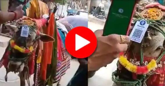 ਹਾਲ ਹੀ 'ਚ ਸੋਸ਼ਲ ਮੀਡੀਆ 'ਤੇ ਇੱਕ ਵੀਡੀਓ ਸਾਹਮਣੇ ਆਈ ਹੈ, ਜਿਸ 'ਚ ਇੱਕ ਵਿਅਕਤੀ ਸਜੀ ਹੋਈ ਗਾਂ ਲੈ ਕੇ ਲੋਕਾਂ ਦੇ ਘਰਾਂ ਨੇੜੇ ਪਹੁੰਚਦਾ ਹੈ। ਇਸ ਦੌਰਾਨ ਉਹ ਪਰੰਪਰਾਗਤ ਬਿਗਲ ਨਾਲ ਲੋਕ ਗੀਤ ਵਜਾਉਂਦਾ ਨਜ਼ਰ ਆ ਰਿਹਾ ਹੈ। ਇਸ ਦੇ ਨਾਲ ਹੀ ਉਸ ਨੇ ਲੋਕਾਂ ਤੋਂ ਪੈਸੇ ਲੈਣ ਲਈ ਗਾਂ ਦੇ ਸਿਰ 'ਤੇ QR ਕੋਡ ਲਗਾ ਦਿੱਤਾ ਹੈ, ਜਿਸ ਨੂੰ ਸਕੈਨ ਕਰਕੇ ਲੋਕ ਦਾਨ ਦੇ ਰਹੇ ਹਨ।