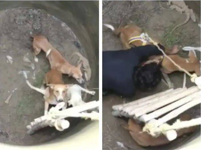 ਅਜਿਹੀ ਸਥਿਤੀ 'ਚ ਇੱਕ ਵਿਅਕਤੀ ਆਪਣੀ ਜਾਨ ਦੀ ਪਰਵਾਹ ਕੀਤੇ ਬਿਨਾਂ ਖਤਰਨਾਕ ਸੱਪ (Snake) ਅਤੇ ਅਜਗਰ ਦੇ ਵਿਚਕਾਰ ਖੂਹ ਵਿੱਚ ਉਤਰ ਜਾਂਦਾ ਹੈ। ਇਸ ਤੋਂ ਬਾਅਦ ਉਹ ਲੰਬੇ ਸਮੇਂ ਤੋਂ ਭੁੱਖੇ ਕੁੱਤਿਆਂ ਨੂੰ ਖਾਣਾ ਖੁਆਉਂਦਾ ਹੈ ਅਤੇ ਫਿਰ ਇੱਕ-ਇੱਕ ਕਰਕੇ ਤਿੰਨਾਂ ਕੁੱਤਿਆਂ ਨੂੰ ਰੱਸੀ ਨਾਲ ਬੰਨ੍ਹ ਕੇ ਖੂਹ ਵਿੱਚੋਂ ਬਾਹਰ ਕੱਢਦਾ ਹੈ। ਫਿਲਹਾਲ ਇਹ ਬਚਾਅ ਵੀਡੀਓ (Rescue Video) ਸੋਸ਼ਲ ਮੀਡੀਆ 'ਤੇ ਜੰਗਲ ਦੀ ਅੱਗ ਵਾਂਗ ਵਾਇਰਲ ਹੋ ਰਿਹਾ ਹੈ।