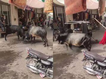ਵਾਇਰਲ ਵੀਡੀਓ ਵਿੱਚ ਦੋ ਬਲਦ ਇੱਕ ਗਲੀ ਵਿੱਚ ਲੜਦੇ ਨਜ਼ਰ ਆ ਰਹੇ ਹਨ। ਕਈ ਦੁਕਾਨਾਂ ਨਜ਼ਰ ਆ ਰਹੀਆਂ ਹਨ ਜਿੱਥੇ ਦੋਵੇਂ ਲੜ ਰਹੇ ਹਨ। ਸੜਕਾਂ ਕਿਨਾਰੇ ਲੱਗੀਆਂ ਇਨ੍ਹਾਂ ਦੁਕਾਨਾਂ 'ਤੇ ਕਈ ਲੋਕ ਵੀ ਮੌਜੂਦ ਹਨ ਜੋ ਇਨ੍ਹਾਂ ਬਲਦਾਂ ਦੀ ਲੜਾਈ ਦੇਖ ਰਹੇ ਹਨ। ਇੱਕ ਆਦਮੀ ਬਲਦ ਨੂੰ ਸੋਟੀ ਨਾਲ ਮਾਰ ਕੇ ਵੱਖ ਕਰਨ ਦੀ ਕੋਸ਼ਿਸ਼ ਕਰ ਰਿਹਾ ਹੈ। ਅਚਾਨਕ ਇੱਕ ਆਟੋ ਚਾਲਕ ਨੇ ਸੋਚਿਆ ਕਿ ਉਹ ਉਨ੍ਹਾਂ ਦੀ ਲੜਾਈ ਨੂੰ ਨਿਪਟਾਉਣ ਲਈ ਆਇਆ ਹੈ। ਉਹ ਆਟੋ ਨੂੰ ਵਾਪਸ ਲੈ ਕੇ ਆਉਂਦਾ ਹੈ ਅਤੇ ਫਿਰ ਬਲਦਾਂ ਦਾ ਸਾਹਮਣਾ ਕਰਦਾ ਹੈ। ਦੋਵੇਂ ਬਲਦ ਵੱਖ ਹੋ ਜਾਂਦੇ ਹਨ ਪਰ ਜਿਵੇਂ ਹੀ ਵਿਅਕਤੀ ਨੇ ਆਪਣਾ ਆਟੋ ਰਿਕਸ਼ਾ ਅੱਗੇ ਚਲਾਇਆ ਤਾਂ ਇੱਕ ਬਲਦ ਨੇ ਆਟੋ 'ਤੇ ਸਿਰ ਨਾਲ ਹਮਲਾ ਕਰ ਦਿੱਤਾ ਅਤੇ ਉਹ ਹੇਠਾਂ ਡਿੱਗ ਗਿਆ। ਇਸ ਤੋਂ ਬਾਅਦ ਲੋਕ ਆਟੋ ਨੂੰ ਚੁੱਕਣ ਦੀ ਕੋਸ਼ਿਸ਼ ਕਰਨ ਲੱਗੇ ਅਤੇ ਬਲਦਾਂ ਦੀ ਲੜਾਈ ਰੁਕ ਗਈ।