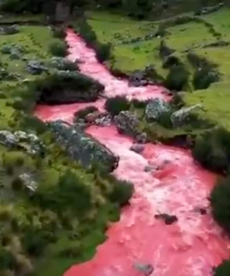 ਹਾਲਾਂਕਿ ਦੁਨੀਆ 'ਚ ਅਜਿਹੀਆਂ ਕਈ ਨਦੀਆਂ ਹਨ, ਜਿਨ੍ਹਾਂ ਦੇ ਰੰਗ ਵੱਖ-ਵੱਖ ਹੁੰਦੇ ਹਨ ਪਰ ਇਸ ਵਾਇਰਲ ਵੀਡੀਓ 'ਚ ਦਿਖਾਈ ਦੇਣ ਵਾਲੀ ਲਾਲ ਰੰਗ ਦੀ ਨਦੀ ਤੁਸੀਂ ਸ਼ਾਇਦ ਹੀ ਕਦੇ ਦੇਖੀ ਹੋਵੇਗੀ। ਇਸ ਹੈਰਾਨ ਕਰਨ ਵਾਲੇ ਵੀਡੀਓ 'ਚ ਇਕ ਨਦੀ ਤੇਜ਼ ਰਫਤਾਰ ਨਾਲ ਵਹਿੰਦੀ ਨਜ਼ਰ ਆ ਰਹੀ ਹੈ, ਜੋ ਪੇਰੂ 'ਚ ਹੈ। ਦੱਖਣੀ ਅਮਰੀਕਾ ਮਹਾਦੀਪ ਦੀ ਇਕ ਘਾਟੀ 'ਚੋਂ ਵਹਿਣ ਵਾਲੀ ਇਸ ਨਦੀ ਦਾ ਇਹ ਵੀਡੀਓ ਪੁਰਾਣਾ ਹੈ ਪਰ ਸਮੇਂ-ਸਮੇਂ 'ਤੇ ਵਾਇਰਲ ਹੁੰਦਾ ਰਹਿੰਦਾ ਹੈ। ਕੁਸਕੋ ਦੀ ਇਸ ਨਦੀ ਵਿੱਚ ਚੈਰੀ ਜਾਂ ਇੱਟ ਵਰਗਾ ਲਾਲ ਰੰਗ ਦਾ ਪਾਣੀ ਵਹਿੰਦਾ ਦਿਖਾਈ ਦਿੰਦਾ ਹੈ, ਜੋ ਦੇਖਣਾ ਬਹੁਤ ਹੀ ਅਦਭੁਤ ਹੈ। ਕਿਹਾ ਜਾਂਦਾ ਹੈ ਕਿ ਮਿੱਟੀ ਦੀਆਂ ਵੱਖ-ਵੱਖ ਪਰਤਾਂ ਵਿੱਚ ਮੌਜੂਦ ਖਣਿਜ ਤੱਤਾਂ ਕਾਰਨ ਨਦੀ ਦਾ ਪਾਣੀ ਲਾਲ ਹੋ ਜਾਂਦਾ ਹੈ। ਇਹ ਰੰਗ ਆਇਰਨ ਆਕਸਾਈਡ ਦੀ ਮੌਜੂਦਗੀ ਦੇ ਕਾਰਨ ਹੈ।