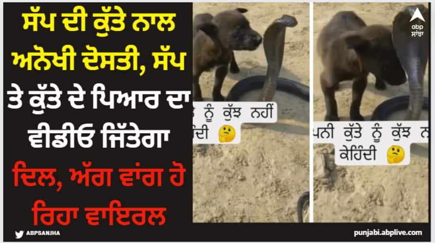 Ajab Gajab News: ਤੁਸੀਂ ਇੰਟਰਨੈੱਟ 'ਤੇ ਬਹੁਤ ਸਾਰੇ ਅਜਿਹੇ ਵਾਇਰਲ ਵੀਡੀਓਜ਼ ਦੇਖੇ ਹੋਣਗੇ, ਜਿਸ ਵਿੱਚ ਇਨਸਾਨ ਤੇ ਕੁੱਤੇ ਦੀ ਦੋਸਤੀ ਨਜ਼ਰ ਆਉਂਦੀ ਹੈ। ਜਾਂ ਫਿਰ ਕੁੱਤੇ ਤੇ ਬਿੱਲੀ ਦੀ ਦੋਸਤੀ, ਕੁੱਤੇ ਤੇ ਸ਼ੇਰ ਦੀ ਦੋਸਤੀ ਵਾਲੇ ਵੀਡੀਓਜ਼ ਵੀ ਸਾਹਮਣੇ ਆਉਂਦੇ ਰਹਿੰਦੇ ਹਨ। ਪਰ ਸੋਸ਼ਲ ਮੀਡੀਆ 'ਤੇ ਇਸ ਸਮੇਂ ਇੱਕ ਅਜਿਹਾ ਵੀਡੀਓ ਵਾਇਰਲ ਹੋ ਰਿਹਾ ਹੈ, ਜਿਸ ਨੂੰ ਦੇਖ ਕੇ ਹਰ ਕੋਈ ਹੈਰਾਨ ਪਰੇਸ਼ਾਨ ਹੋ ਰਿਹਾ ਹੈ। ਇਹ ਵੀਡੀਓ ਹੈ ਸੱਪਣੀ ਤੇ ਕੁੱਤੇ ਦੀ ਦੋਸਤੀ ਦਾ। ਜੀ ਹਾਂ, ਤੁਸੀਂ ਬਿਲਕੁਲ ਸਹੀ ਸੁਣਿਆ ਹੈ।