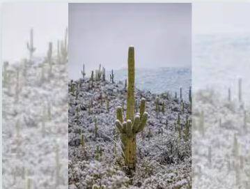 ਦਹਾਕਿਆਂ ਬਾਅਦ ਹੋਈ ਬਰਫਬਾਰੀ- ਲਗਭਗ 0.1 ਮਿਲੀਅਨ ਵਰਗ ਮੀਲ ਦੇ ਖੇਤਰ ਵਿੱਚ ਫੈਲੇ ਉੱਤਰੀ ਅਮਰੀਕਾ ਦੇ ਸੋਨੋਰਨ ਰੇਗਿਸਤਾਨ ਵਿੱਚ ਗਰਮੀਆਂ ਦੇ ਮੌਸਮ ਵਿੱਚ ਤਾਪਮਾਨ 48 ਡਿਗਰੀ ਸੈਲਸੀਅਸ ਤੱਕ ਪਹੁੰਚ ਜਾਂਦਾ ਹੈ। ਇੱਥੇ ਹਰ ਪਾਸੇ ਸਿਰਫ਼ ਧੂੜ ਹੀ ਨਜ਼ਰ ਆਉਂਦੀ ਹੈ। ਇੱਥੇ ਪਾਣੀ ਨਾ ਹੋਣ ਕਾਰਨ ਕਿਸੇ ਲਈ ਵੀ ਇੱਥੇ ਰਹਿਣਾ ਆਸਾਨ ਨਹੀਂ ਹੈ। ਪਰ ਅਜੇ ਕੁਝ ਦਿਨ ਪਹਿਲਾਂ ਹੀ ਇੱਥੇ ਭਾਰੀ ਬਰਫਬਾਰੀ ਹੋਈ ਸੀ। ਇਸ ਇਤਿਹਾਸਕ ਦ੍ਰਿਸ਼ ਨੂੰ ਲੈਂਡਸਕੇਪ ਫੋਟੋਗ੍ਰਾਫਰ ਜੈਕ ਡਾਇਕਿੰਗਾ ਨੇ ਵੀ ਆਪਣੇ ਕੈਮਰੇ ਵਿੱਚ ਕੈਦ ਕੀਤਾ ਹੈ। ਡਾਇਕਿੰਗਾ 1976 ਤੋਂ ਸੋਨੋਰਨ ਰੇਗਿਸਤਾਨ ਦੀ ਫੋਟੋ ਖਿੱਚ ਰਿਹਾ ਹੈ। ਉਨ੍ਹਾਂ ਦਾ ਕਹਿਣਾ ਹੈ ਕਿ ਇੱਥੇ ਦਹਾਕਿਆਂ ਤੋਂ ਬਰਫ ਨਹੀਂ ਪਈ ਸੀ। ਅਜਿਹੇ 'ਚ ਇੱਥੇ ਬਰਫਬਾਰੀ ਸੱਚਮੁੱਚ ਹੀ ਕਿਸੇ ਜਾਦੂ ਵਰਗੀ ਲੱਗ ਰਹੀ ਹੈ।