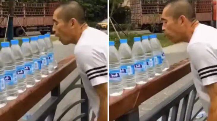 ਜਿੱਥੇ ਲੋਕਾਂ ਦੀਆਂ ਬਾਹਾਂ ਵਿੱਚ ਤਾਕਤ ਹੈ, ਉੱਥੇ ਇਸ ਬੰਦੇ ਦੇ ਸਾਹਾਂ ਵਿੱਚ ਵੀ ਅਥਾਹ ਤਾਕਤ ਹੈ। ਲੋਕ ਇਸ ਵੀਡੀਓ ਨੂੰ ਕਾਫੀ ਪਸੰਦ ਕਰ ਰਹੇ ਹਨ ਅਤੇ ਸ਼ਖਸ ਦੀ ਇਸ ਸ਼ਾਨਦਾਰ ਪ੍ਰਤਿਭਾ ਦੀ ਤਾਰੀਫ ਕਰ ਰਹੇ ਹਨ। ਕੀ ਤੁਹਾਡੇ ਕੋਲ ਪਾਣੀ ਦੀ ਭਰੀ ਬੋਤਲ ਨੂੰ ਇਸ ਤਰ੍ਹਾਂ ਸੁੱਟਣ ਦੀ ਸ਼ਕਤੀ ਹੈ? ਬੰਦੇ ਨੂੰ ਬਹੁਤ ਅਭਿਆਸ ਦੀ ਲੋੜ ਹੁੰਦੀ ਹੈ, ਤਾਂ ਹੀ ਉਹ ਇਹ ਕੰਮ ਇੰਨੀ ਚੰਗੀ ਤਰ੍ਹਾਂ ਕਰ ਰਿਹਾ ਹੈ।