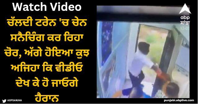 ਕਈ ਵਾਰ ਟਰੇਨ 'ਚ ਸਫਰ ਕਰਦੇ ਸਮੇਂ ਅਜਿਹਾ ਹੁੰਦਾ ਹੈ ਜਾਂ ਫਿਰ ਪਤਾ ਚੱਲਦਾ ਹੈ ਕਿ ਟਰੇਨ 'ਚ ਚੇਨ ਸਨੈਚਿੰਗ ਹੋ ਗਈ ਹੈ। ਅਜਿਹਾ ਹੀ ਇੱਕ ਵੀਡੀਓ ਵਾਇਰਲ ਹੋ ਰਿਹਾ ਹੈ। ਜਿਸ ਵਿੱਚ ਤੁਸੀਂ ਵੇਖ ਸਕਦੇ ਹੋ ਕਿ ਇੱਕ ਚੋਰ ਗੇਟ ਦੇ ਕੋਲ ਖੜ੍ਹਾ ਹੈ ਅਤੇ ਉਡੀਕ ਕਰ ਰਿਹਾ ਹੈ ਕਿ ਕਿਸੇ ਵੀ ਸਮੇਂ ਕੋਈ ਆਵੇਗਾ। ਕੁਝ ਦੇਰ ਬਾਅਦ ਨਾਲ ਵਾਲੀ ਬੋਗੀ ਤੋਂ ਦੋ ਔਰਤਾਂ ਬਾਥਰੂਮ ਤੋਂ ਆਪਣੀ ਸੀਟ 'ਤੇ ਆ ਗਈਆਂ। ਇਸ ਦੌਰਾਨ ਅਚਾਨਕ ਚੋਰ ਮੌਕਾ ਦੇਖ ਕੇ ਔਰਤ ਦੇ ਗਲੇ 'ਚ ਪਾਈ ਚੇਨ ਝਪਟ ਕੇ ਭੱਜਣ ਦੀ ਕੋਸ਼ਿਸ਼ ਕਰਨ ਲਗਦਾ ਹੈ, ਪਰ ਜਦੋਂ ਉਹ ਚੇਨ ਚੋਰੀ ਕਰਦਾ ਹੈ ਉਸ ਸਮੇਂ ਟਰੇਨ ਦੀ ਰਫ਼ਤਾਰ ਬਹੁਤ ਤੇਜ਼ ਹੁੰਦੀ ਹੈ। ਪਰ ਫਿਰ ਵੀ ਚੋਰ ਨੇ ਟਰੇਨ ਤੋਂ ਛਾਲ ਮਾਰ ਦਿੱਤੀ। ਜਿਸ ਕਾਰਨ ਉਹ ਰੇਲਗੱਡੀ 'ਚ ਪੂਰੀ ਤਰ੍ਹਾਂ ਰਗੜ ਕੇ ਬੁਰੀ ਤਰ੍ਹਾਂ ਜ਼ਖ਼ਮੀ ਹੋ ਗਿਆ।