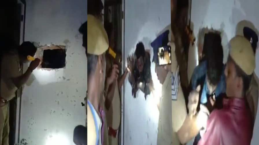 ਸ਼ਰਾਬ ਦੀ ਦੁਕਾਨ 'ਤੇ ਚੋਰ ਰੰਗੇ ਹੱਥੀਂ ਕਾਬੂਆਨਲਾਈਨ ਇੱਕ ਵੀਡੀਓ ਸਾਹਮਣੇ ਆਇਆ ਹੈ, ਜਿਸ ਵਿੱਚ ਤਾਮਿਲਨਾਡੂ ਦੇ ਤਿਰੂਵੱਲੁਰ ਜ਼ਿਲ੍ਹੇ ਦੇ ਦੋ ਚੋਰ ਸ਼ਰਾਬ ਦੀ ਦੁਕਾਨ ਦੀ ਕੰਧ ਵਿੱਚ ਮੋਰੀ ਕੱਢ ਕੇ ਬੋਤਲਾਂ ਚੋਰੀ ਕਰਦੇ ਦਿਖਾਈ ਦੇ ਰਹੇ ਹਨ। ਉਨ੍ਹਾਂ ਨੇ ਪੈਸਿਆਂ ਲਈ ਬੋਤਲਾਂ ਵੇਚਣ ਦੀ ਯੋਜਨਾ ਬਣਾਈ ਸੀ, ਪਰ ਪਹਿਲਾਂ ਸ਼ਰਾਬ ਪੀਣ ਅਤੇ ਫਿਰ ਦੁਕਾਨ ਛੱਡਣ ਦਾ ਫੈਸਲਾ ਕੀਤਾ। ਇਸ ਦੌਰਾਨ ਪੁਲਿਸ ਨੇ ਦੋਵਾਂ ਨੂੰ ਕਾਬੂ ਕਰ ਲਿਆ। ਉਨ੍ਹਾਂ ਨੇ ਸੋਚਿਆ ਵੀ ਨਹੀਂ ਸੀ ਕਿ ਉਹ ਰੰਗੇ ਹੱਥੀਂ ਫੜੇ ਜਾਣਗੇ। ਵੀਡੀਓ ਵਿੱਚ, ਪੁਲਿਸ ਚੋਰਾਂ ਨੂੰ ਕੰਧ ਵਿੱਚ ਖੋਦਣ ਵਾਲੇ ਮੋਰੀ ਵਿੱਚੋਂ ਬਾਹਰ ਆਉਣ ਲਈ ਕਹਿੰਦੀ ਹੈ।