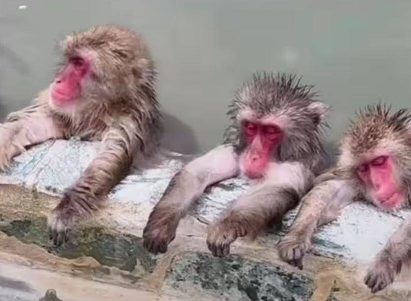 ਇੱਕ ਛੱਪੜ ਵਿੱਚ ਤਿੰਨ ਬਾਂਦਰਾਂ ਨੂੰ ਆਰਾਮ ਕਰਦੇ ਦਿਖਾਉਂਦਾ ਇਹ ਪਿਆਰਾ ਵੀਡੀਓ ਇੰਟਰਨੈੱਟ 'ਤੇ ਵਾਇਰਲ ਹੋ ਗਿਆ ਹੈ। ਇਸ ਵੀਡੀਓ ਨੂੰ ਕੁਝ ਦਿਨ ਪਹਿਲਾਂ ਇੰਸਟਾਗ੍ਰਾਮ 'ਤੇ ਸ਼ੇਅਰ ਕੀਤਾ ਗਿਆ ਹੈ ਅਤੇ ਹੁਣ ਤੱਕ ਇਸ ਨੂੰ 6 ਲੱਖ ਵਾਰ ਦੇਖਿਆ ਜਾ ਚੁੱਕਾ ਹੈ। ਛੱਪੜ 'ਚ ਨਹਾਉਣ ਤੋਂ ਬਾਅਦ ਇਹ ਤਿੰਨੇ ਬਾਂਦਰ ਬਾਹਰ ਨਿਕਲਣ ਦਾ ਨਾਂ ਨਹੀਂ ਲੈ ਰਹੇ ਅਤੇ ਪੂਰੀ ਤਰ੍ਹਾਂ ਆਰਾਮਦੇਹ ਮੂਡ 'ਚ ਕੰਢੇ 'ਤੇ ਆ ਕੇ ਆਰਾਮ ਕਰਦੇ ਹੋਏ ਝਪਕੀ ਲੈਂਦੇ ਨਜ਼ਰ ਆ ਰਹੇ ਹਨ।