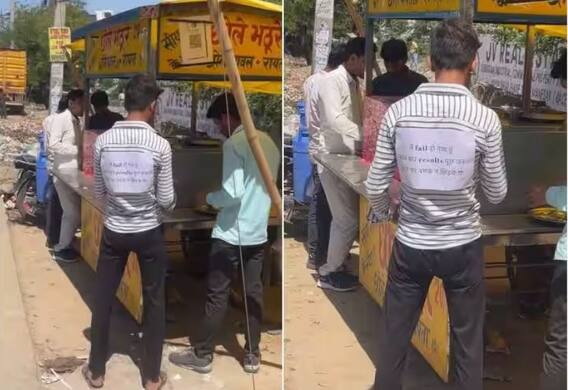 ਪਿੱਠ 'ਤੇ ਲਗਾ ਦਿੱਤਾ ਫੇਲ ਹੋਣ ਦਾ ਪੋਸਟਰ- ਵੀਡੀਓ ਨੂੰ ਸੋਸ਼ਲ ਮੀਡੀਆ ਦੇ ਕਈ ਪਲੇਟਫਾਰਮਾਂ 'ਤੇ ਸ਼ੇਅਰ ਕੀਤਾ ਜਾ ਰਿਹਾ ਹੈ। ਜਿਸ ਨੂੰ ਇੰਸਟਾਗ੍ਰਾਮ 'ਤੇ mokush555 ਨਾਂ ਦੀ ਪ੍ਰੋਫਾਈਲ ਤੋਂ ਪੋਸਟ ਕੀਤਾ ਗਿਆ ਹੈ। ਇਸ ਵੀਡੀਓ 'ਚ ਇੱਕ ਨੌਜਵਾਨ ਨੂੰ ਸੜਕ ਕਿਨਾਰੇ ਇੱਕ ਸਟ੍ਰੀਟ ਫੂਡ ਦੀ ਦੁਕਾਨ 'ਤੇ ਛੋਲੇ ਭਟੂਰੇ ਖਾਂਦੇ ਦੇਖਿਆ ਜਾ ਸਕਦਾ ਹੈ। ਇਸ ਦੌਰਾਨ ਇੱਕ ਖਾਸ ਗੱਲ ਸਭ ਦਾ ਧਿਆਨ ਆਪਣੇ ਵੱਲ ਖਿੱਚ ਰਹੀ ਹੈ। ਅਸਲ 'ਚ ਪ੍ਰੀਖਿਆ 'ਚ ਫੇਲ ਹੋਏ ਇਸ ਵਿਦਿਆਰਥੀ ਦੀ ਪਿੱਠ 'ਤੇ ਪੇਪਰ ਹੈ। ਜਿਸ 'ਤੇ ਲਿਖਿਆ ਹੈ ਕਿ 'ਮੈਂ ਫੇਲ ਹੋ ਗਿਆ ਹਾਂ'। ਨਤੀਜਾ ਵਾਰ-ਵਾਰ ਪੁੱਛ ਕੇ ਜਲੇ 'ਤੇ ਲੂਣ ਨਾ ਰਗੜੋ।