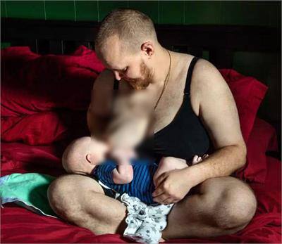ਪਿਉ ਚੁੰਘਾ ਰਿਹਾ ਆਪਣੇ ਬੱਚੇ ਨੂੰ ਦੁੱਧ..
