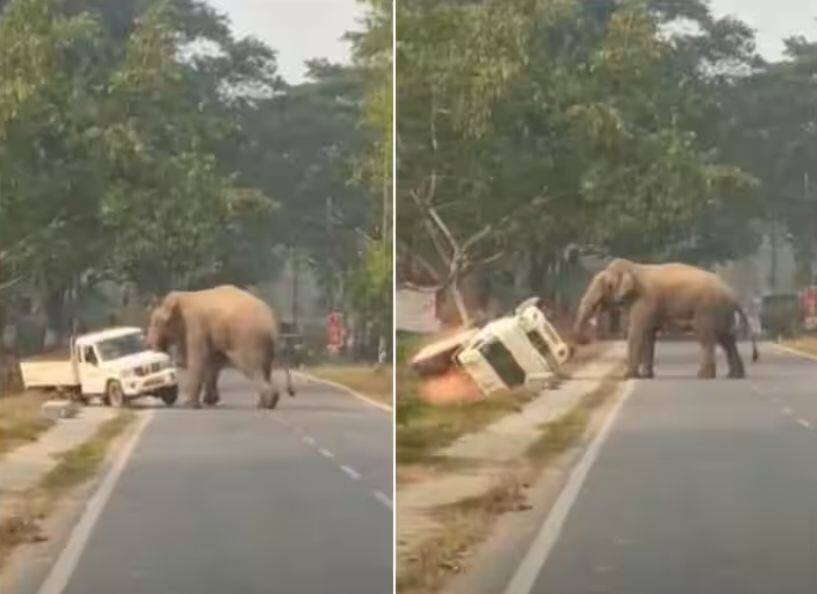 ਗੁੱਸੇ ਵਿੱਚ ਆਏ ਹਾਥੀ ਦਾ ਹਮਲਾ- ਵਾਇਰਲ ਹੋ ਰਹੀ ਵੀਡੀਓ ਨੂੰ ਆਈਪੀਐਸ ਅਧਿਕਾਰੀ ਰੁਪਿਨ ਸ਼ਰਮਾ ਨੇ ਟਵਿਟਰ 'ਤੇ ਸ਼ੇਅਰ ਕੀਤਾ ਹੈ। ਇਸ ਵੀਡੀਓ 'ਚ ਇੱਕ ਵਾਹਨ ਸੜਕ 'ਤੇ ਖੜ੍ਹਾ ਨਜ਼ਰ ਆ ਰਿਹਾ ਹੈ। ਉਦੋਂ ਹੀ ਇੱਕ ਗੁੱਸੇ ਵਾਲਾ ਹਾਥੀ ਉਸ ਦੇ ਸਾਹਮਣੇ ਪਹੁੰਚ ਜਾਂਦਾ ਹੈ। ਫਿਰ ਹਾਥੀ ਦਾ ਗੁੱਸਾ ਸੱਤਵੇਂ ਅਸਮਾਨ 'ਤੇ ਪਹੁੰਚ ਜਾਂਦਾ ਹੈ ਅਤੇ ਉਹ ਗੱਡੀ ਨੂੰ ਖਿਡੌਣੇ ਵਾਂਗ ਮੋੜ ਦਿੰਦਾ ਹੈ। ਜਿਸ ਨੂੰ ਦੇਖ ਕੇ ਯੂਜ਼ਰਸ ਦੀਆਂ ਅੱਖਾਂ ਫਟੀਆਂ ਰਹਿ ਗਈਆਂ।