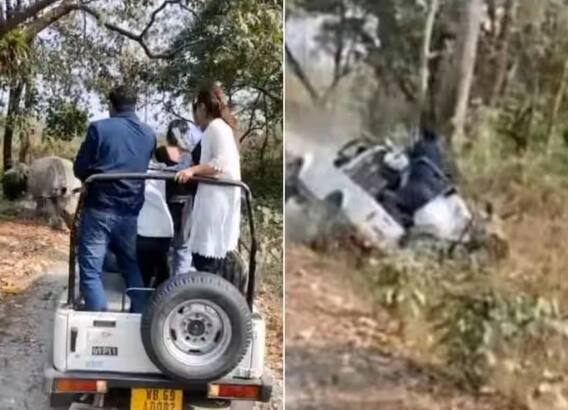 ਵੀਡੀਓ ਨੂੰ 55 ਮਿਲੀਅਨ ਵਿਊਜ਼ ਮਿਲੇ ਹਨ- ਫਿਲਹਾਲ ਇਹ ਰਾਹਤ ਦੀ ਗੱਲ ਹੈ ਕਿ ਗੱਡੀ ਪਲਟਦੀ ਦੇਖ ਕੇ ਗੈਂਡੇ ਉੱਥੋਂ ਭੱਜ ਗਏ। ਅਜਿਹੇ 'ਚ ਵਾਹਨ ਪਲਟਣ ਕਾਰਨ ਸੈਲਾਨੀਆਂ ਨੂੰ ਮਾਮੂਲੀ ਸੱਟਾਂ ਲੱਗ ਜਾਂਦੀਆਂ ਹਨ। ਇਸ ਦੇ ਨਾਲ ਹੀ ਇਹ ਵੀਡੀਓ ਸੋਸ਼ਲ ਮੀਡੀਆ 'ਤੇ ਤੇਜ਼ੀ ਨਾਲ ਯੂਜ਼ਰਸ ਦਾ ਧਿਆਨ ਆਪਣੇ ਵੱਲ ਖਿੱਚ ਰਹੀ ਹੈ। ਖ਼ਬਰ ਲਿਖੇ ਜਾਣ ਤੱਕ 8 ਲੱਖ 72 ਹਜ਼ਾਰ ਤੋਂ ਵੱਧ ਲਾਈਕਸ ਅਤੇ 5 ਕਰੋੜ 50 ਲੱਖ ਤੋਂ ਵੱਧ ਵਾਰ ਦੇਖਿਆ ਜਾ ਚੁੱਕਾ ਹੈ। ਵੀਡੀਓ 'ਤੇ ਕਮੈਂਟ ਕਰਦੇ ਹੋਏ ਯੂਜ਼ਰਸ ਕਹਿ ਰਹੇ ਹਨ ਕਿ ਇਸ ਤਰ੍ਹਾਂ ਜੰਗਲ ਸਫਾਰੀ ਕਰਨਾ ਅਤੇ ਜੰਗਲੀ ਜਾਨਵਰਾਂ ਦਾ ਖੇਤਰ 'ਚ ਦਾਖਲ ਹੋਣਾ ਗਲਤ ਹੈ।