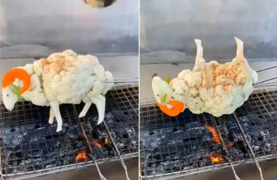 ਕੋਲੇ ਦੀ ਲਾਟ 'ਤੇ ਸ਼ਾਕਾਹਾਰੀ ਤੋਂ ਬਣੀ ਇਸ ਭੇਡ ਡੰਮੀ ਨੂੰ ਭੁੰਨਦੇ ਹੋਏ ਇਕ ਵਿਅਕਤੀ ਮਸਾਲਾ ਛਿੜਕਦਾ ਨਜ਼ਰ ਆ ਰਿਹਾ ਹੈ। ਫਿਲਹਾਲ ਇਹ ਵੀਡੀਓ ਸੋਸ਼ਲ ਮੀਡੀਆ 'ਤੇ ਤੇਜ਼ੀ ਨਾਲ ਵਾਇਰਲ ਹੋ ਰਿਹਾ ਹੈ। ਜਿਸ ਨੂੰ ਖ਼ਬਰ ਲਿਖੇ ਜਾਣ ਤੱਕ 10 ਲੱਖ ਤੋਂ ਵੱਧ ਵਿਊਜ਼ ਮਿਲ ਚੁੱਕੇ ਹਨ। ਇਸ ਦੇ ਨਾਲ ਹੀ 26 ਹਜ਼ਾਰ ਤੋਂ ਵੱਧ ਯੂਜ਼ਰਸ ਨੇ ਇਸ ਨੂੰ ਪਸੰਦ ਕੀਤਾ ਹੈ। ਵੀਡੀਓ ਨੂੰ ਦੇਖ ਕੇ ਯੂਜ਼ਰਸ ਕਮੈਂਟ ਕਰ ਰਹੇ ਹਨ ਅਤੇ ਇਸ ਨੂੰ 'ਸ਼ਾਕਾਹਾਰੀ ਲੇਲਾ' ਕਹਿ ਰਹੇ ਹਨ।