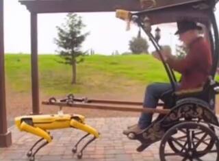 ਘੋੜਾ ਕੰਮ ਕਰਨ ਵਾਲਾ ਰੋਬੋਟ- ਹੈਰਾਨੀ ਦੀ ਗੱਲ ਇਹ ਹੈ ਕਿ ਉਸ ਬੱਗੀ ਨਾਲ ਬੰਨ੍ਹਿਆ ਰੋਬੋਟ ਕਿਸੇ ਜਾਨਵਰ ਵਰਗਾ ਦਿਖਾਈ ਦਿੰਦਾ ਹੈ। ਜਿਸ ਦੀਆਂ ਪਸ਼ੂਆਂ ਵਾਂਗ ਚਾਰ ਲੱਤਾਂ ਹਨ। ਫਿਲਹਾਲ ਉਸਦਾ ਸਿਰ ਦਿਖਾਈ ਨਹੀਂ ਦੇ ਰਿਹਾ ਹੈ। ਜਿਸ ਦਾ ਕੰਮ ਰੋਬੋਟ ਦੀ ਬਾਡੀ 'ਤੇ ਲੱਗੇ ਕੈਮਰਿਆਂ ਦੁਆਰਾ ਕੀਤਾ ਜਾ ਰਿਹਾ ਹੈ। ਫਿਲਹਾਲ ਵੀਡੀਓ 'ਚ ਰੋਬੋਟ ਨੂੰ ਘੋੜੇ ਦੀ ਤਰ੍ਹਾਂ ਬੱਗੀ ਨੂੰ ਖਿੱਚਦੇ ਦੇਖਿਆ ਜਾ ਸਕਦਾ ਹੈ। ਜਿਵੇਂ ਹੀ ਵਿਅਕਤੀ ਬੱਗੀ 'ਤੇ ਬੈਠਦਾ ਹੈ ਅਤੇ ਰੋਬੋਟ ਨੂੰ ਕਮਾਂਡ ਦਿੰਦਾ ਹੈ, ਤਾਂ ਉਹ ਰੋਬੋਟ ਅੱਗੇ ਵਧਦੇ ਹੋਏ ਬੱਗੀ ਨੂੰ ਖਿੱਚਣਾ ਸ਼ੁਰੂ ਕਰ ਦਿੰਦਾ ਹੈ।