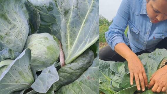 Snake in cabbage leaf: ਹਰੀਆਂ ਸਬਜ਼ੀਆਂ ਦੇ ਸ਼ੌਕੀਨ ਲੋਕਾਂ ਦੀ ਕੋਈ ਕਮੀ ਨਹੀਂ। ਕੁਝ ਲੋਕ ਬਾਜ਼ਾਰ ਵਿਚੋਂ ਸਬਜ਼ੀ ਖਰੀਦਦੇ ਹਨ, ਜਦਕਿ ਕੁਝ ਲੋਕ ਸਿੱਧੇ ਖੇਤਾਂ 'ਚ ਜਾ ਕੇ ਤਾਜ਼ੀ ਸਬਜ਼ੀ ਲੈ ਕੇ ਆਉਂਦੇ ਹਨ। ਪਰ ਜ਼ਰਾ ਸੋਚੋ, ਜਦੋਂ ਤੁਸੀਂ ਸਬਜ਼ੀ ਲੈਣ ਜਾਵੋ ਅਤੇ ਉਸ ਵਿਚ ਕੋਈ ਖਤਰਨਾਕ ਜੀਵ ਛੁਪਿਆ ਹੁੰਦਾ ਹੈ? ਯਕੀਨਨ ਤੁਹਾਡਾ ਦਿਲ ਕੰਬ ਜਾਵੇਗਾ।