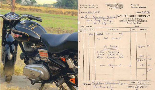 ਇਹ ਬਿੱਲ 23 ਜਨਵਰੀ, 1986 ਦਾ ਹੈ, ਜੋ ਇਸ ਸਮੇਂ ਝਾਰਖੰਡ ਦੇ ਕੋਠਾਰੀ ਮਾਰਕੀਟ ਵਿੱਚ ਸਥਿਤ ਇੱਕ ਅਧਿਕਾਰਤ ਡੀਲਰ ਦਾ ਦੱਸਿਆ ਜਾ ਰਿਹਾ ਹੈ। ਬਿੱਲ ਦੇ ਅਨੁਸਾਰ, ਉਸ ਸਮੇਂ 350 ਸੀਸੀ ਬੁਲੇਟ ਮੋਟਰਸਾਈਕਲ ਦੀ ਆਨ-ਰੋਡ ਕੀਮਤ 18,800 ਰੁਪਏ ਸੀ, ਜੋ ਕਿ ਛੋਟ ਤੋਂ ਬਾਅਦ 18,700 ਰੁਪਏ ਵਿੱਚ ਵੇਚੀ ਗਈ ਸੀ।