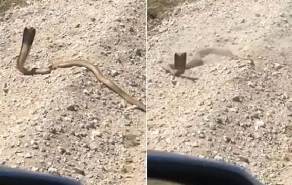 King Cobra Viral Video: ਸੋਸ਼ਲ ਮੀਡੀਆ 'ਤੇ ਹਾਲ ਹੀ ਦੇ ਦਿਨਾਂ 'ਚ ਕੁਝ ਹੈਰਾਨੀਜਨਕ ਵੀਡੀਓ ਦੇਖਣ ਨੂੰ ਮਿਲੇ ਹਨ। ਜਿਸ ਨੂੰ ਦੇਖ ਕੇ ਹਰ ਕੋਈ ਦੰਗ ਰਹਿ ਜਾਂਦਾ ਹੈ। ਇੱਕ ਅਜਿਹੀ ਵੀਡੀਓ ਅੱਜਕੱਲ੍ਹ ਹਰ ਕਿਸੇ ਨੂੰ ਪਰੇਸ਼ਾਨ ਕਰ ਰਿਹਾ ਹੈ। ਜਿਸ ਵਿੱਚ ਇੱਕ ਵਿਅਕਤੀ ਸੜਕ ਕਿਨਾਰੇ ਦਿਖਾਈ ਦੇ ਰਹੇ ਕਿੰਗ ਕੋਬਰਾ 'ਤੇ ਗੋਲੀਆਂ ਚਲਾਉਂਦਾ ਨਜ਼ਰ ਆ ਰਿਹਾ ਹੈ। ਜਿਸ ਤੋਂ ਬਾਅਦ ਕਿੰਗ ਕੋਬਰਾ ਆਪਣਾ ਬਦਲਾ ਲੈਣ ਲਈ ਅੱਗੇ ਵਧਦਾ ਹੈ, ਜਿਸ ਨੂੰ ਦੇਖ ਕੇ ਹਰ ਕੋਈ ਹੈਰਾਨ ਰਹਿ ਜਾਂਦਾ ਹੈ।