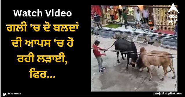 ਵਾਇਰਲ ਹੋ ਰਹੀ ਇਸ ਹੈਰਾਨ ਕਰਨ ਵਾਲੀ ਵੀਡੀਓ 'ਚ ਗਲੀ 'ਚ ਦੋ ਬਲਦਾਂ ਵਿਚਾਲੇ ਲੜਾਈ ਹੁੰਦੀ ਦਿਖਾਈ ਦੇ ਰਹੀ ਹੈ। ਇਸ ਦੌਰਾਨ ਉਥੋਂ ਲੰਘਣ ਵਾਲਾ ਇੱਕ ਵਿਅਕਤੀ ਆਉਂਦਾ ਹੈ ਅਤੇ ਗੁੱਸੇ ਵਿੱਚ ਆਏ ਜਾਨਵਰਾਂ ਦੇ ਸਾਹਮਣੇ ਖੜ੍ਹਾ ਹੋ ਕੇ ਉਨ੍ਹਾਂ ਦੀ ਲੜਾਈ ਨੂੰ ਸ਼ਾਂਤ ਕਰਦਾ ਹੈ। ਅੱਗੇ ਕੀ ਹੋਇਆ ਤੁਸੀਂ ਖੁਦ ਦੇਖ ਸਕਦੇ ਹੋ।